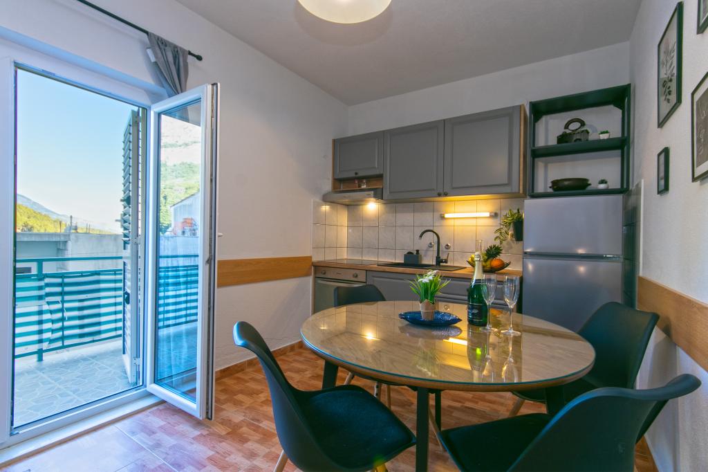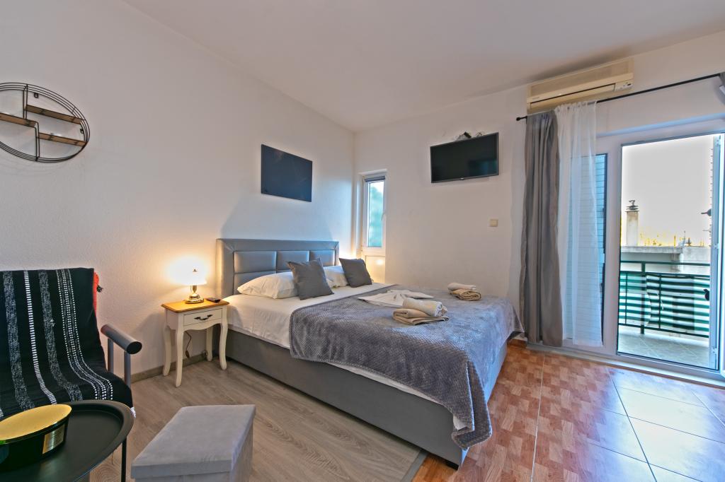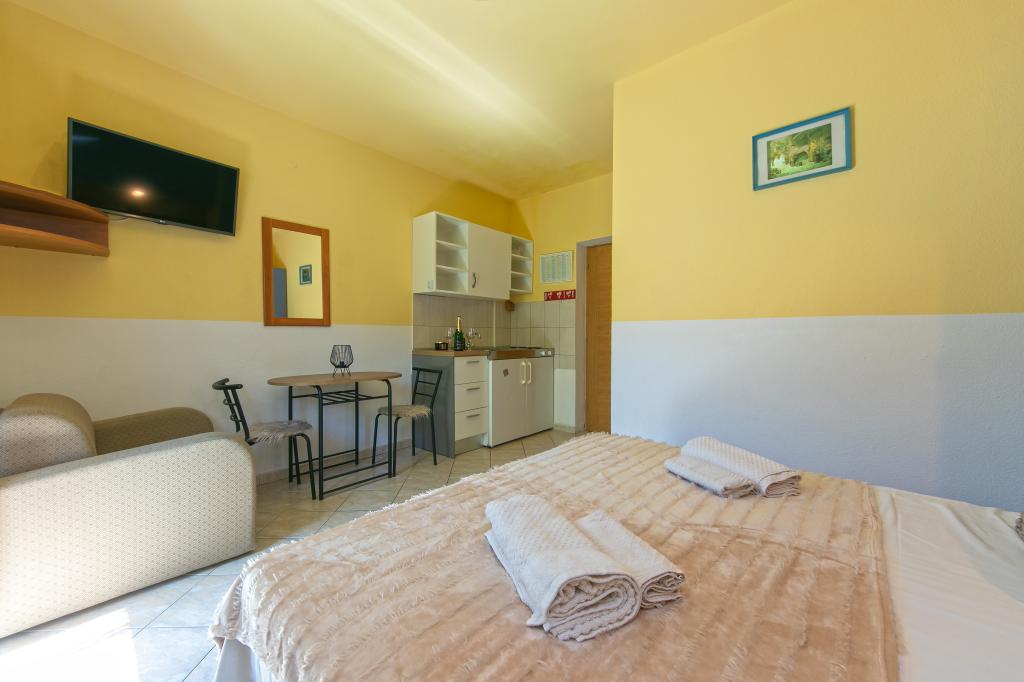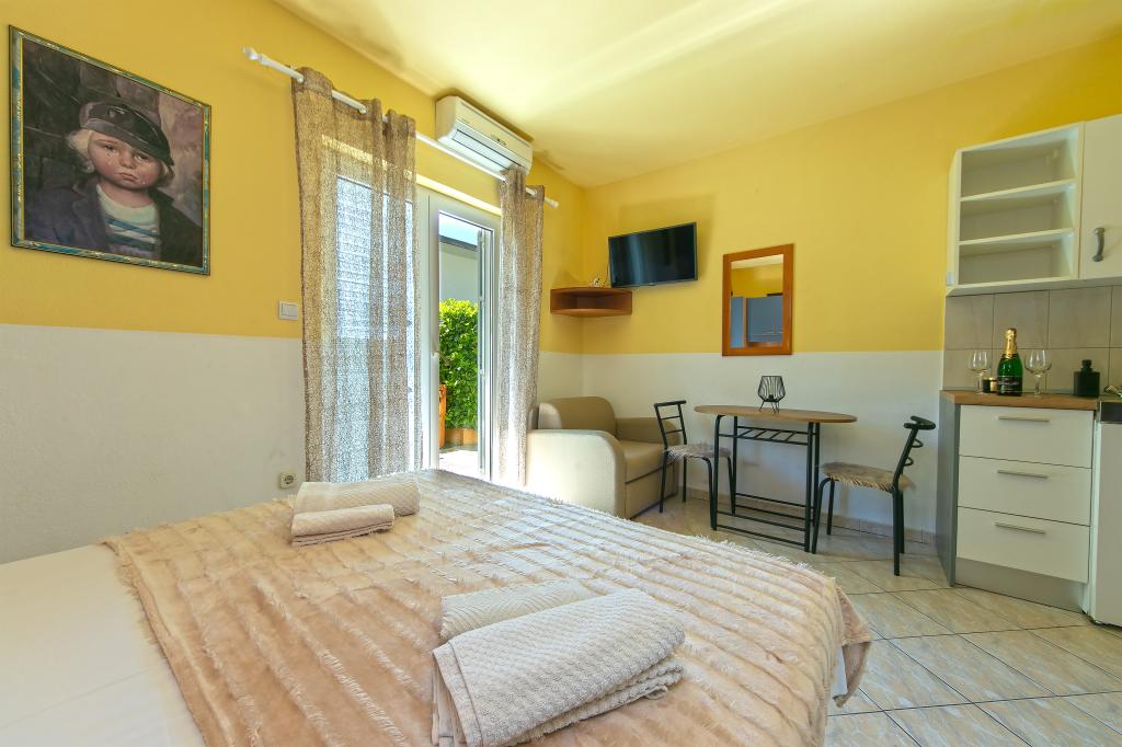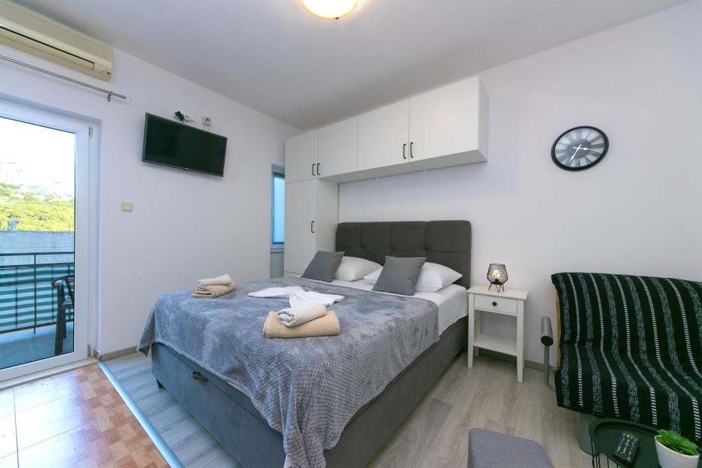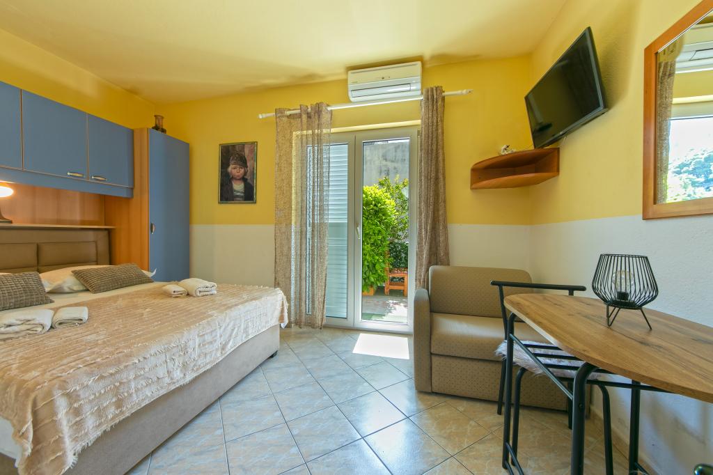 Apartments Hrvoje bevindt zich op een verhoogde positie in het rustige deel van Stomarica Street. Afstand van het kiezelstrand is ongeveer 3 minuten. lopen of 150 m. Aan de ene kant van het huis is er een uitzicht op de zee en de andere heeft een uitzicht op de berg Biokovo. Het familie aanbod van Jelčić is van kwaliteit en de gasten kunnen volledig ontspannen in de appartementen en een onvergetelijke vakantie doorbrengen. De appartementen voldoen aan alle gasten die een aangename vakantie willen doorbrengen. Het aanbod omvat appartementen met keuken, slaapkamer, airconditioning, satelliet-tv, badkamer en balkons. Achter het huis is een tuinterras met tafels waar u kunt ontspannen terwijl u geniet van de rustige sfeer met uitzicht op de zee. Ook verkrijgbaar is het gebruik van een buitengrill, maar een vriendelijke dame. Jelcic helpt ze graag. Parkeren is beveiligd.