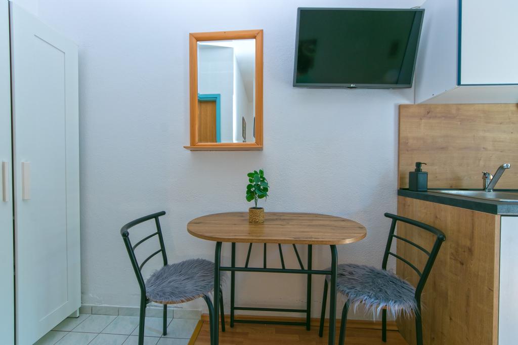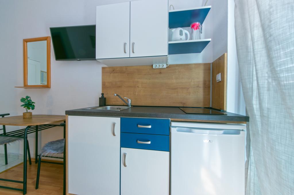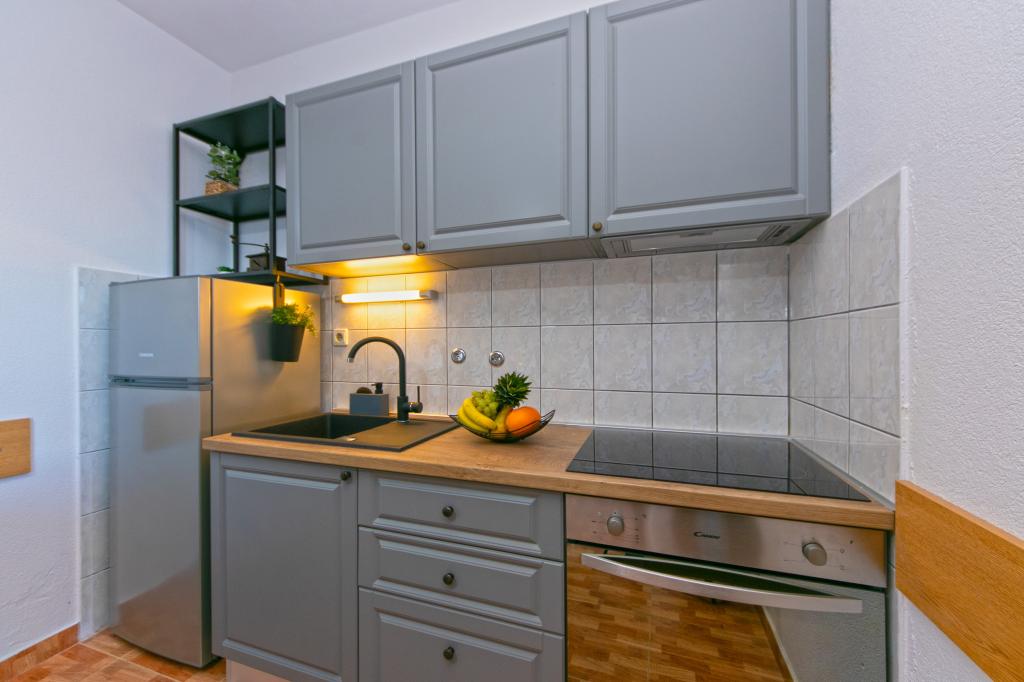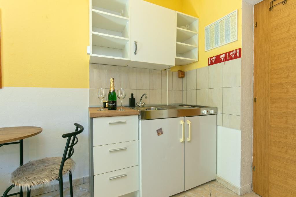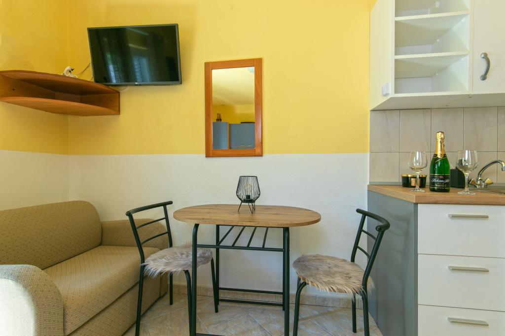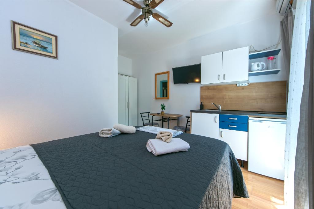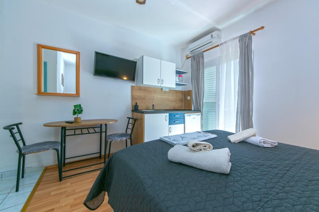 Apartments Hrvoje bevindt zich op een verhoogde positie in het rustige deel van Stomarica Street. Afstand van het kiezelstrand is ongeveer 3 minuten. lopen of 150 m. Aan de ene kant van het huis is er een uitzicht op de zee en de andere heeft een uitzicht op de berg Biokovo. Het familie aanbod van Jelčić is van kwaliteit en de gasten kunnen volledig ontspannen in de appartementen en een onvergetelijke vakantie doorbrengen. De appartementen voldoen aan alle gasten die een aangename vakantie willen doorbrengen. Het aanbod omvat appartementen met keuken, slaapkamer, airconditioning, satelliet-tv, badkamer en balkons. Achter het huis is een tuinterras met tafels waar u kunt ontspannen terwijl u geniet van de rustige sfeer met uitzicht op de zee. Ook verkrijgbaar is het gebruik van een buitengrill, maar een vriendelijke dame. Jelcic helpt ze graag. Parkeren is beveiligd.