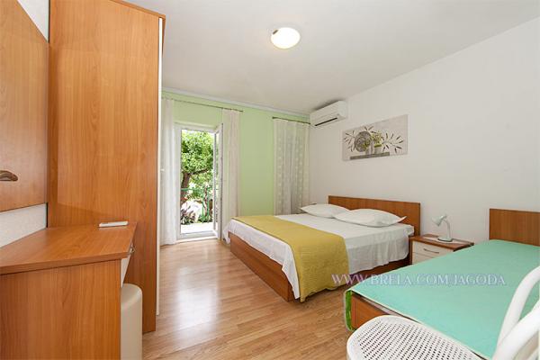 Apartments Jagoda Klaric zijn gelegen in een rustig deel van Brela (Stomarica) een kilometer en een half van het stadscentrum. Aan de ene kant is er het uitzicht op de zee, en de andere heeft een uitzicht op de berghelling. De dichtstbijzijnde supermarkt ligt op ongeveer 300 m en de afstand van het strand, dat is ongeveer 2 minuten loopafstand (80 m). Accommodatie bestaat uit: Appartement 1: 60m² 20m² bakon / terras, 1 triple kamer met balkon (begane grond), 1 triple kamer met balkon (1e verdieping), 2 badkamers met toilet, volledig ingerichte keuken met eetkamer, een groot terras met uitzicht op de zee. Maximale capaciteit voor 6 personen. Appartement 2 / (Na 2 etage): 65m² 15m² balkon / terras, 1 tweepersoonskamer met balkon, 2 badkamers met toilet, een triple kamer met een balkon, een volledig uitgeruste keuken, eetkamer / woonkamer met een bank en een balkon, alle balkons zijn uitzicht op de zee. Maximale capaciteit voor 6 personen.