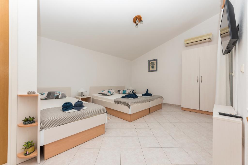 Appartementen KiS Zelić zijn gelegen op een rustige locatie, op slechts 100 m van de zee en prachtige kiezelstranden. Aan de ene kant is er een prachtig uitzicht op de zee en de eilanden, en aan de andere kant op de berg Biokovo. De appartementen bieden alles wat u nodig heeft voor een aangenaam verblijf. De kamers zijn voorzien van compleet beddengoed en handdoeken. Handdoeken worden om de 3 dagen verschoond en beddengoed om de 7 dagen. De keuken met eetkamer is uitgerust met een fornuis, koelkast, waterkoker, compleet servies en bestek. Elk appartement heeft een terras of balkon, satelliet-tv, WiFi en parkeergelegenheid. De dichtstbijzijnde markt ligt op 200 m afstand, een restaurant met mediterrane keuken op 200 m afstand.