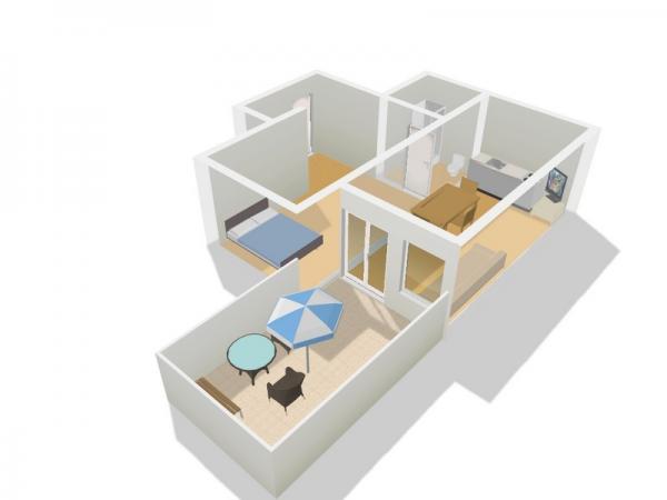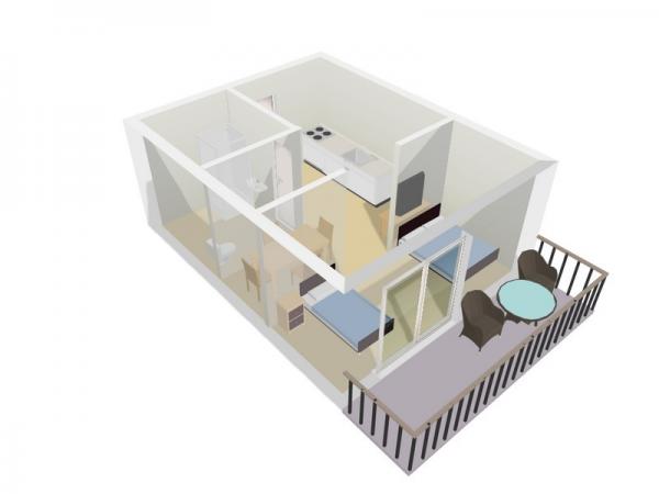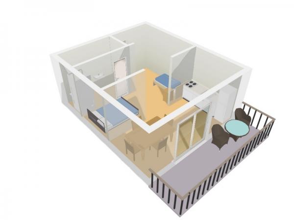 Appartement met alle noodzakelijke elementen. Een klein paradijs voor ontspanning en plezier.
