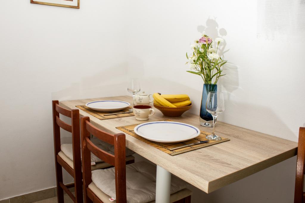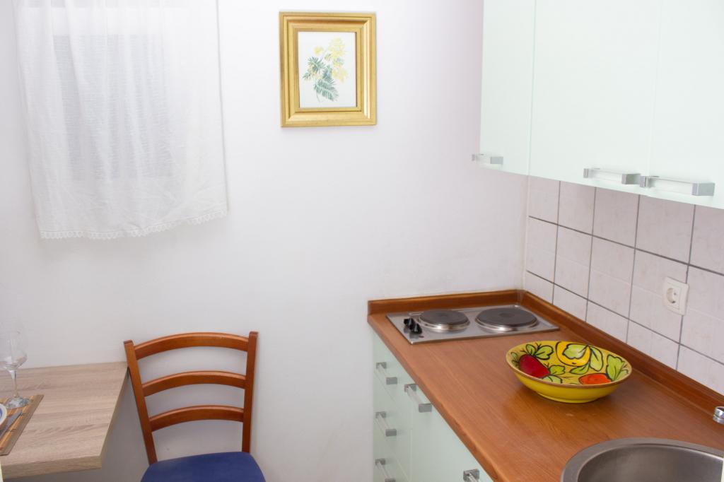 Oke. Appartement zoals op de foto. De koelkast koelt goed, airconditioning werkt, altijd warm water. Het uitzicht vanaf het balkon op de zee en de bergen. Mevrouw Ana, een erg aardige en warme vrouw, voor een goede morgen bood ze rakija aan, en bij vertrek ze gaf de hele fles. In de gang staat een strijkplank met een strijkijzer. Het gebied is 's avonds erg rustig, 15 minuten naar Baśka Voda en' s avonds is er vol leven. Ik zou het ten zeerste aanbevelen.
