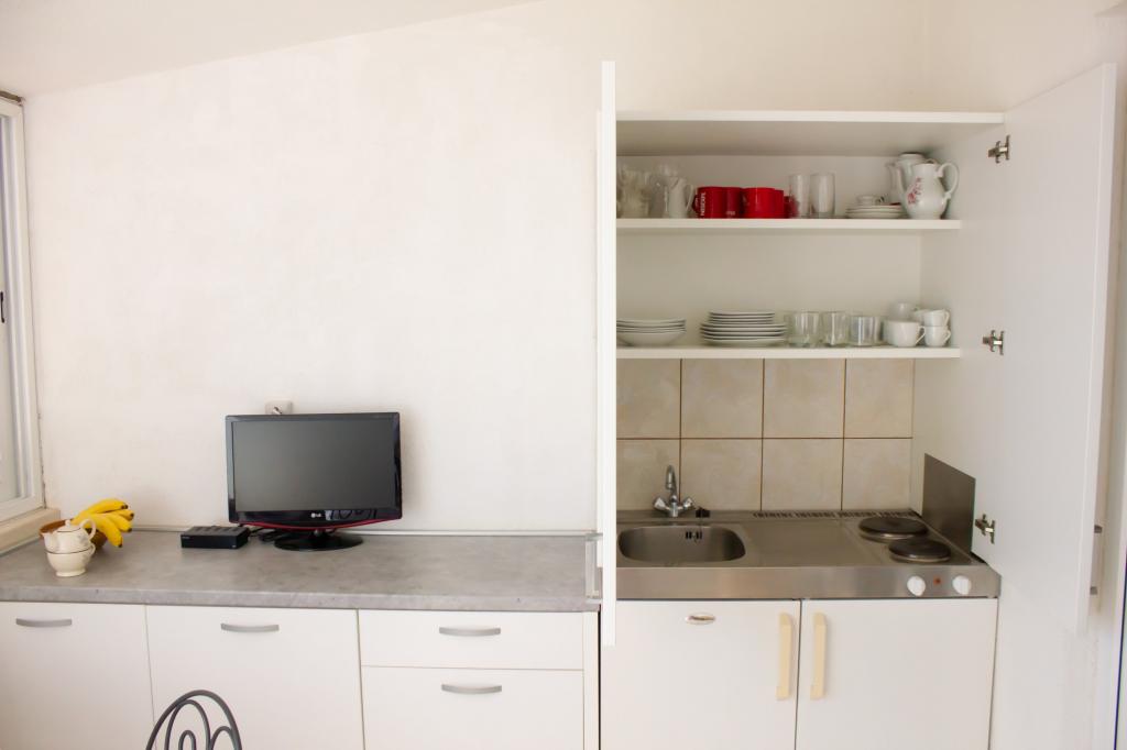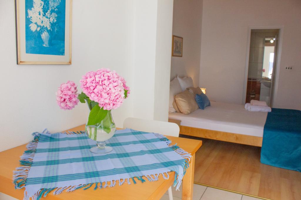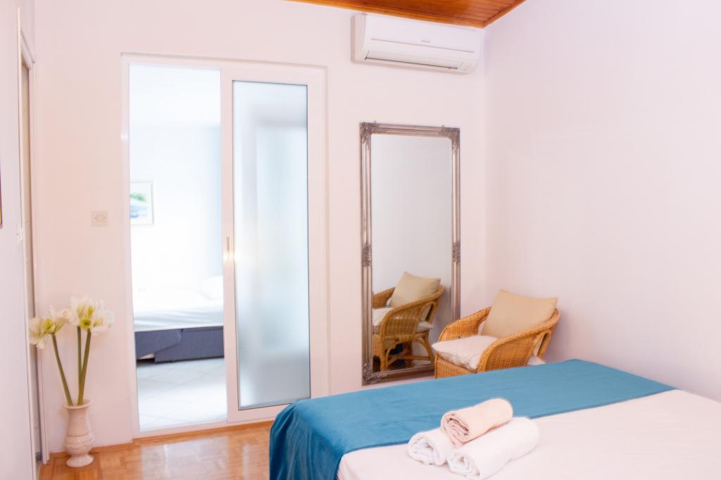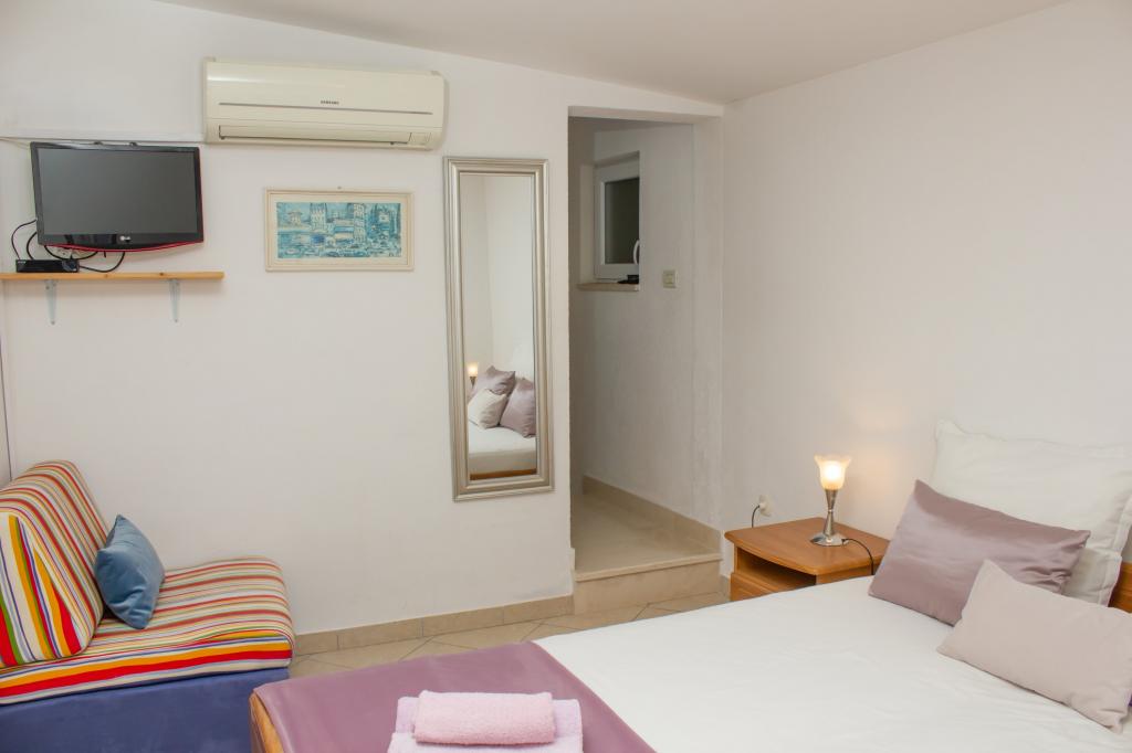 Om te beginnen wil ik vermelden dat er 230 treden zijn van het appartement naar het strand. Een ander ding is parkeren. Aangekomen bij het appartement zegt de dame laten we ons voertuig achter de voertuigen van de andere gasten parkeren. Op mijn vraag, wat als die persoon die we geparkeerd hebben met de auto weg moet, antwoordt ze dat ze ons zal bellen om haar auto weg te halen zodat andere gasten kunnen uitstappen. Onaanvaardbaar. Een ander onaanvaardbaar iets is de binnenkomst van de gastheer in het appartement toen we er niet waren, natuurlijk kwamen ze binnen om te controleren of de airconditioner werkte, omdat het een halsmisdaad is. Het appartement bevindt zich op de zolder en het wordt erg warm binnen, dus airconditioning is noodzakelijk. We lieten de airconditioner 2 uur draaien toen we weg waren en de dame kwam ons waarschuwen dat we dat niet moesten doen, omdat ze het appartement binnenkwam toen we er niet waren om te controleren. De airconditioner zelf werkt slecht, d.w.z. het duurt een uur om de temperatuur met 2-3 graden te verlagen. Ook voel je de airco want het is te duur om voor het seizoen een spray voor 10 euro te kopen en de airco schoon te maken. De balkondeur kan niet helemaal dicht omdat hij kapot is, de dame vroeg natuurlijk waarom die niet helemaal dicht was toen ze op patrouille was tijdens onze afwezigheid. De badkamer heeft geen raam en geen ventilator, maar godzijdank heeft het een scheepsvloer aan het plafond, die voelbaar is aan de oudheid. De douchecabine lekt op de vloer doordat de afdichtingen rondom de cabine niet goed zijn. De kledingkast is een erfenis uit een vervlogen tijdperk en de hangers erin zijn plakkerig. Ik kreeg de lijm niet van mijn handen of het t-shirt dat ik aan die hanger hing. Bestek zit in een lade die lange tijd niet is schoongemaakt. De TV is eigenlijk een monitor in de functie van een televisie. Kortom, ik raad deze accommodatie niet aan en ik kan foto's bijvoegen als bewijs van al het bovenstaande. We besloten om het appartement vroeg te verlaten en op zoek te gaan naar meer geschikte accommodatie. De gastheren hebben niet besloten om het geld terug te geven voor de dagen dat we niet bij hen waren, en we betaalden het gehele geplande verblijf op de eerste dag bij aankomst. Fout.