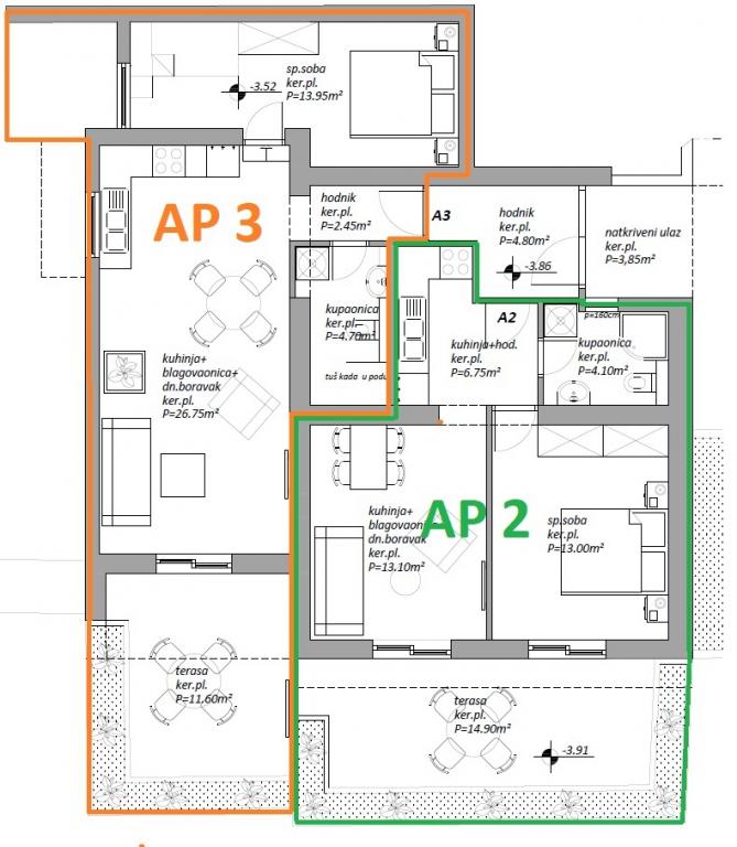 Appartement voor vier personen + twee extra bedden (70 m2)