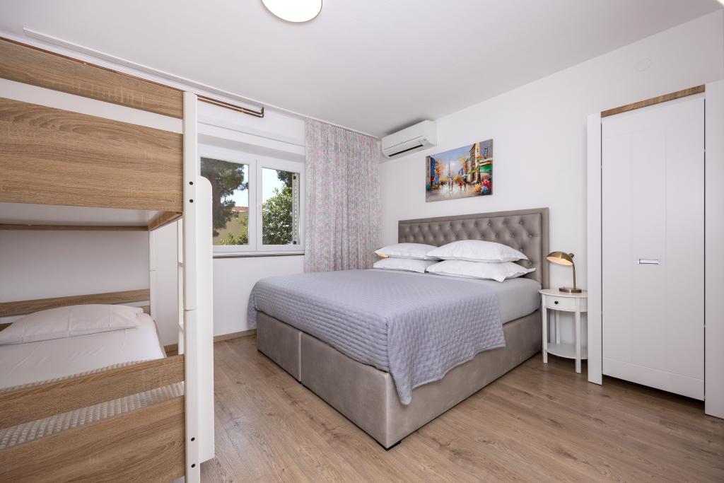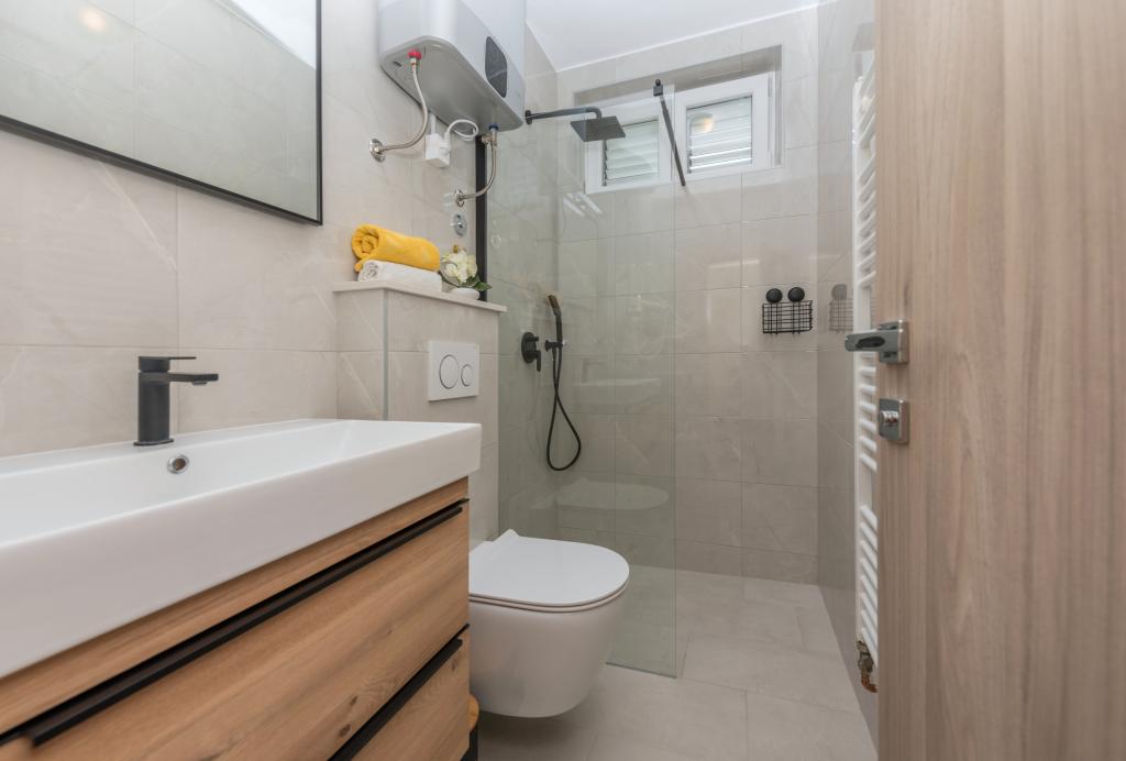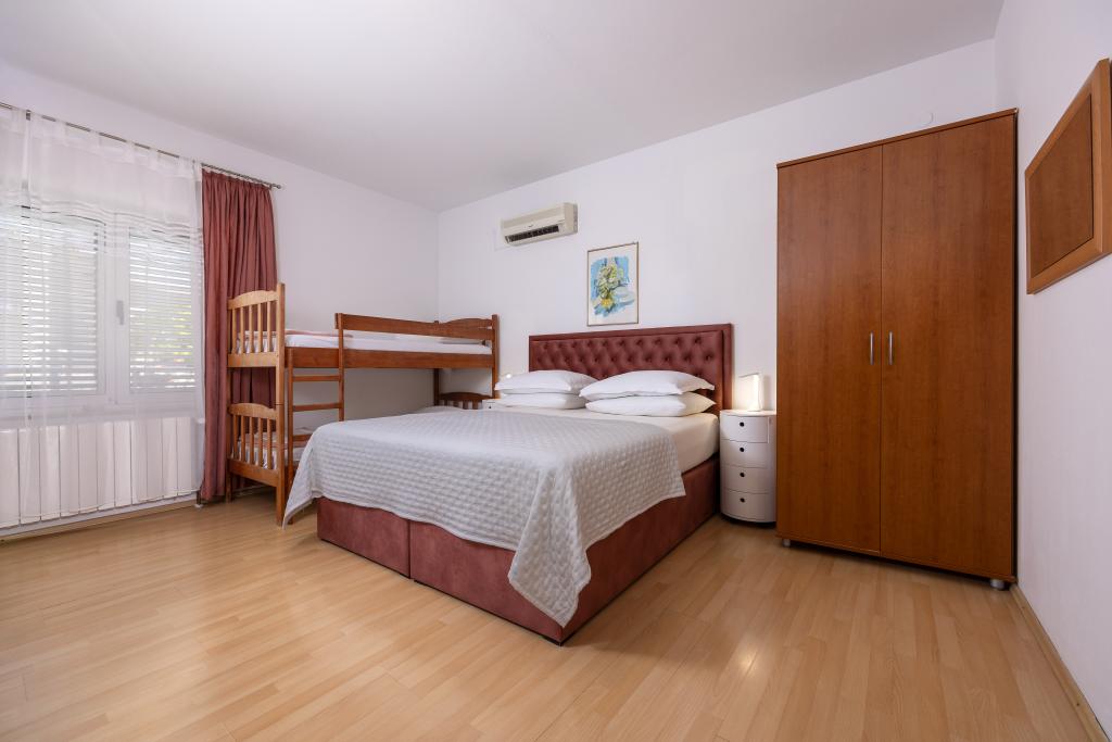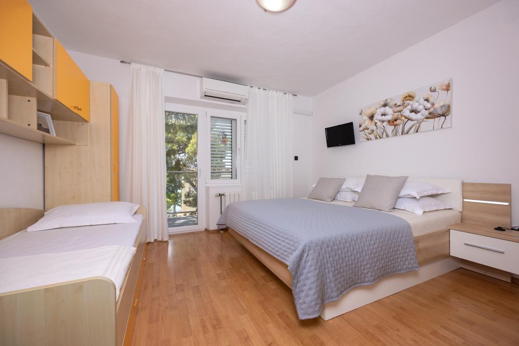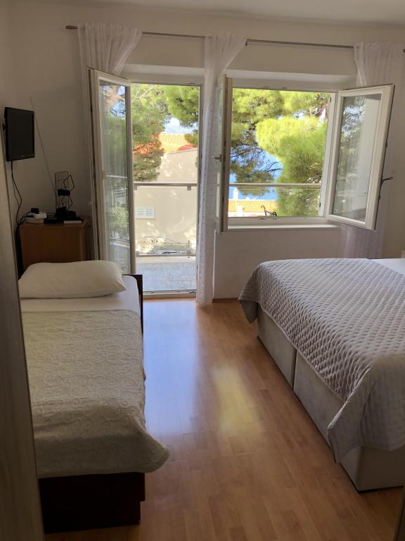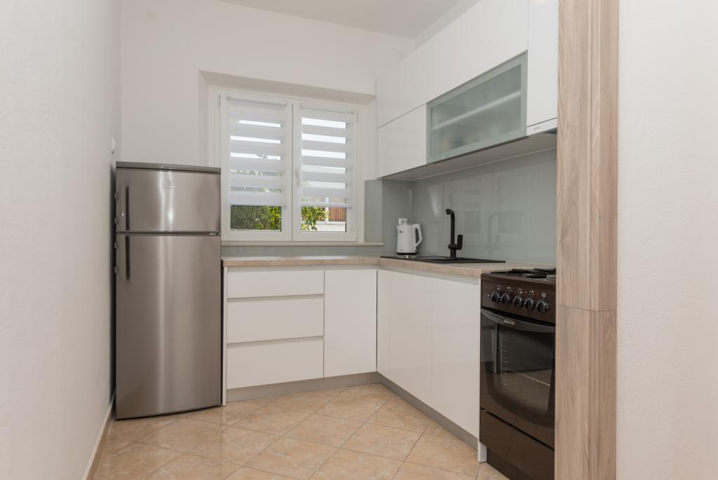 Appartementen Škrabić – Geniet van de rust aan zee Welkom bij Appartementen Škrabić, gelegen op slechts 100 meter van de zee in een rustig deel van Brela. Wij bieden vier comfortabel ingerichte appartementen met uitzicht op zee, de tuin of het dennenbos – ideaal voor gezinnen, stellen en vrienden. Alle appartementen beschikken over wifi, airconditioning, een volledig uitgeruste keuken, een balkon of terras, een beveiligde parkeerplaats en een plek om strandspullen op te bergen. Het complex is omgeven door een grote tuin met een barbecue en natuurlijke schaduw. Wij staan altijd voor onze gasten klaar – naast een warm welkom bieden wij privacy en een authentieke Dalmatische sfeer.