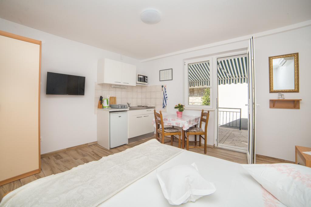 Appartementen Stipan bevinden zich in het centrum van Brela. Brela is een bekende naam in toeristische kringen van de wereld, dankzij zijn natuurlijke schoonheid en bijna honderdjarige toeristische traditie. Van onze appartementen naar het strand heb je slechts 2 minuten nodig om naar beneden te gaan en voor de achterkant heb je iets meer ongeveer 5 minuten nodig. Naar het centrum waar alle restaurants, cafés en patisserieën zich bevinden, heeft u 10-15 minuten lopen nodig. Brela is 7-8 km lang en aan zee is er een promenade die 's avonds mooi is. Wie houdt van rust, stilte, een pauze van het lawaai en de drukte en drukte van Brela, is hier op de juiste plek. Vakantie in Brela is iets moois.