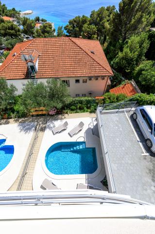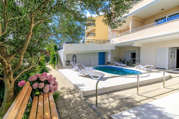 Apartments Ulix Brela ligt in Brela, een kleine, aantrekkelijke plaats aan de Makarska Riviera met een lange toeristische traditie. In ons aanbod vindt u 3 tweekamerappartementen 4 2 (4 personen, met de mogelijkheid van 2 extra bedden), 3 studio-appartementen 2 1 (2 personen, met de mogelijkheid van 1 extra bed) en 1 studio-appartement (2 personen ). Alle appartementen zijn onlangs gerenoveerd, hebben een ruim balkon met uitzicht op de zee en de nabijgelegen eilanden (behalve het studio-appartement voor 2 personen, dat direct naast het zwembad ligt), en onze gasten hebben ook gratis wifi, parkeergelegenheid en een zwembad op de binnenplaats van het huis, een fitnessruimte en een gedeelde wasmachine. Wij zijn gevestigd op een rustige locatie, op 150 m van de zee, vanwaar u gemakkelijk in minder dan 10 minuten naar het centrum van Brela en in 15 minuten naar het centrum van Baška Voda kunt lopen. De supermarkt ligt op slechts 50 meter afstand en het eerste restaurant ligt op 300 meter afstand.