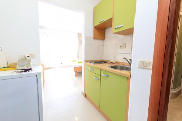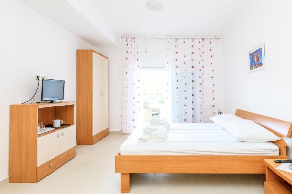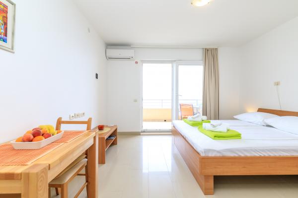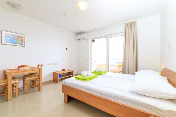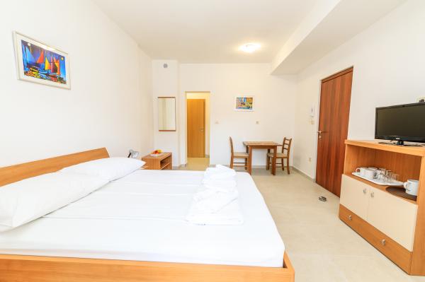 Lees meer Accommodatie eenhedenVooruitbetaling: 30%. Extra bed (per persoon): Buiten het seizoen: 10 EUR/nacht. Van 1 juli - 31 augustus: 15 EUR/nacht. Voor kinderen tot 7 jaar: 50% korting op een extra bed. Aankomsttijd: vanaf 14.00 uur. Vertrektijd: tot 10.00 uur.
