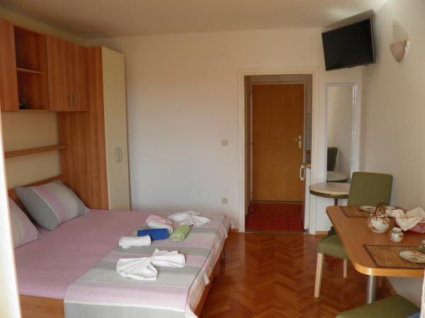 Zoran appartementen zijn gelegen in een rustig deel van Brela, tweede rij, rust en stilte gegarandeerd. Het centrum van Baska Voda en Brela ligt op 15 minuten lopen naar het strand 5 minuten lopen. House Zoran heeft 2 appartementen en 7 studio\s. Alle kamers hebben een keuken, badkamer, balkon - terras, met uitzicht op de zee en het park. Het park is voorzien van een fontein.