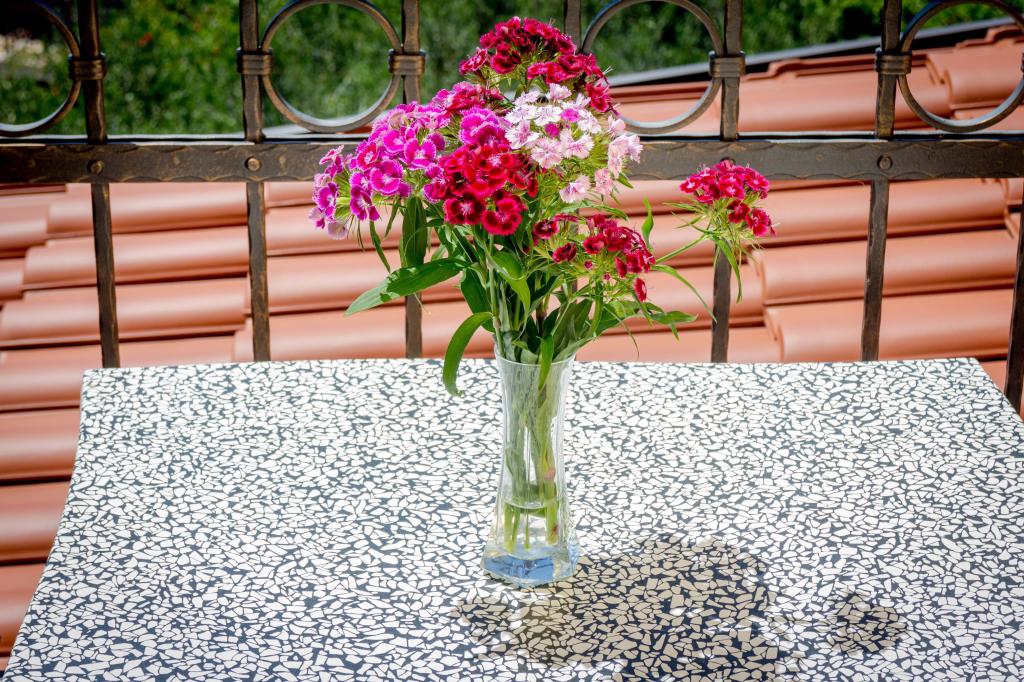 Inlusief wel Toeristenbelasting.Wij bieden 6 volledig uitgeruste appartementen en 1 kamer. Alle wooneenheden zijn voorzien van airconditioning (woonkamer), lcd-tv en gratis internettoegang (WiFi). De appartementen zijn modern ingericht, in alle appartementen is er een volledig uitgeruste keuken met keukengerei om te eten en te koken, een waterkoker, een magnetron, een tafel met stoelen en meubilair voor het balkon of terras. De kamer bestaat uit twee bedden met de mogelijkheid voor een extra bed. Het heeft een koelkast en een waterkoker. Het ligt op het noorden, zonder balkon. Het beddengoed wordt elke 7 dagen verschoond en de handdoeken 2 keer per week. Een welkomstdrankje en de eindschoonmaak zijn bij de prijs inbegrepen. Er is parkeergelegenheid voor de villa.