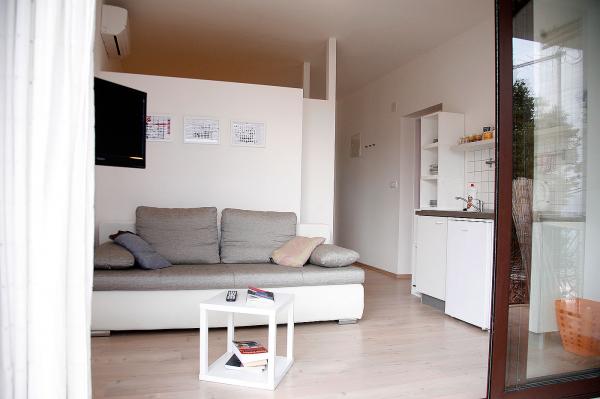Ons huis is gelegen op een toplocatie, dicht bij het strand (3 rijen), cafes, restaurants, wandelingen langs het strand en het centrum van de stad. Omringd door familie huizen. Appartementen in ons huis bieden u rust, stilte en zeer aangename sfeer. Beide appartementen zijn voorzien van gratis Wi-Fi. De wooneenheden zijn ruim, eenvoudig en modern. Ze hebben een volledig uitgeruste keuken, badkamer, balkon of terras. Wat ik wil benadrukken is zeker een prachtig uitzicht over de zee en de eilanden en de berghelling.