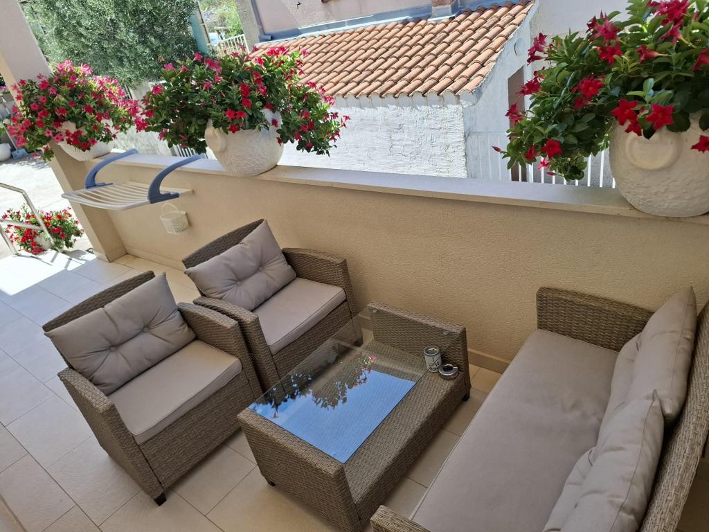 Inlusief wel Toeristenbelasting. Boekingsbevestigingsdocument bij reserveringEr is gratis parkeergelegenheid en gratis gebruik van internet. De begane grond heeft een grill en een terras voor gezelligheid beschikbaar. Alle appartementen zijn voorzien van airconditioning. Gasten krijgen een welkomstdrankje met een heerlijk hapje Dalmatische gerookte ham en kaas. Ook hebben de gasten de mogelijkheid om onze agrarische boerderij waar we groeien lokale groenten en fruit die zich kan verzamelen en consumeren te bezoeken.