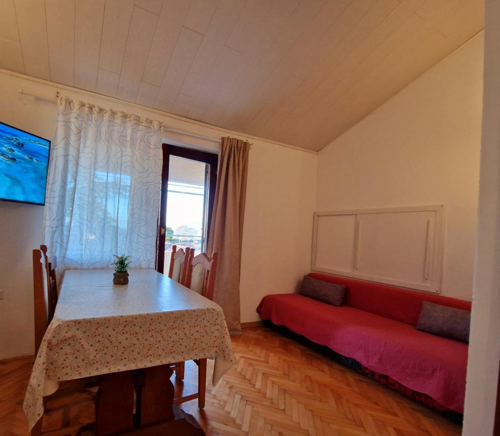 Volledig ingerichte appartementen in Brodarica in de buurt van Šibenik. Naast de appartementen is er ook een tuin met een speeltuin, een barbecue en een ruime parkeerplaats. Het strand ligt op 50 meter afstand (1 minuut lopen). Alle voorzieningen in de buurt - bakker, winkel, restaurant, pizzeria's, promenade aan zee, lokale bushalte. Winkelcentrum "Dalmare" op 5 minuten afstand. met de auto/bus. Šibenik ligt op 10 minuten afstand. met de auto/bus. NP Krka ligt op 20 km afstand. Brodarica strekt zich uit over 6 km langs de kustlijn met zijn boulevard en stranden. In de nabijgelegen stad Šibenik kunt u genieten van middeleeuwse straatjes en forten, evenals een rijk gastronomisch aanbod. Vriendelijke gastheren :)