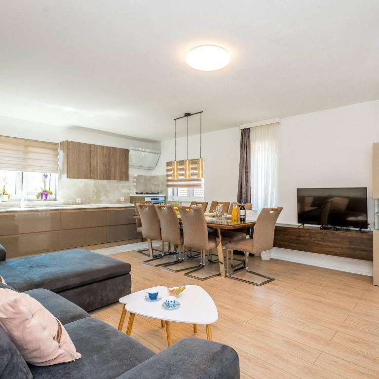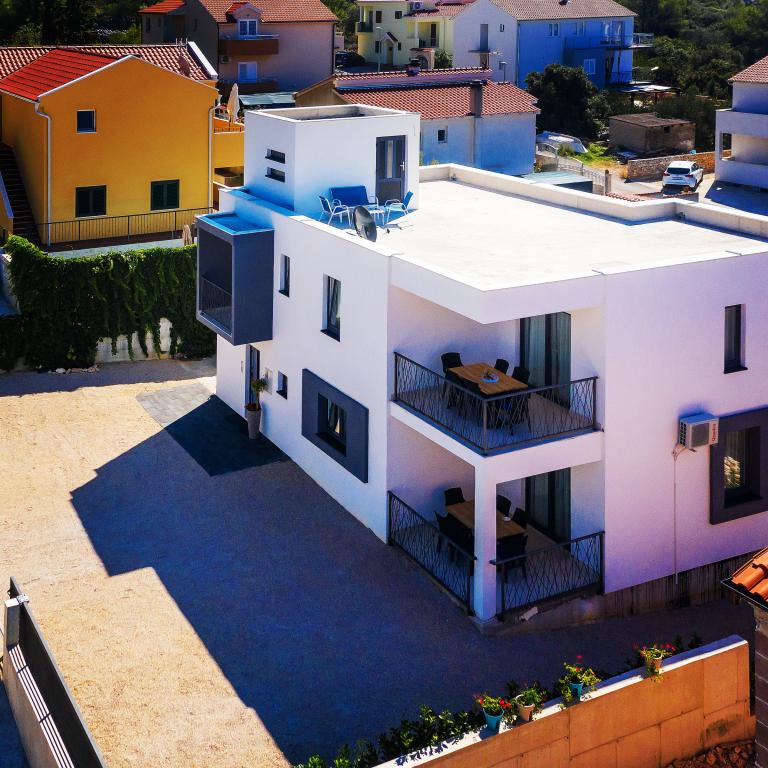 Nieuw ingericht en uitgerust appartement voor 6 1 plaats Brodarica in de buurt van Sibenik. Het appartement is modern ingericht met een oppervlakte van 115 m2. Het heeft 3 slaapkamers, 3 badkamers, keuken, woonkamer en terras. Airconditioning, uitgerust met vaatwasser, wasmachine en droger, wi-fi, satelliet-tv. Parkeren op het erf. Het ligt op 500 m van het strand, vlakbij de bakker, winkels, restaurants. Groetjes en een fijne vakantie!