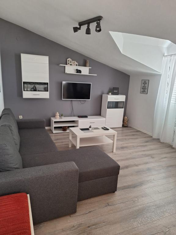 Een studio-appartement van voldoende grootte voor een acceptabele prijs en voor een kort verblijf. De gastheer is vriendelijk en staat voor je klaar, het appartement was netjes en schoon toen we aankwamen. 100 m van de zee, winkels en cafés, en zeer dicht bij het Solaris-hotelcomplex en Šibenik