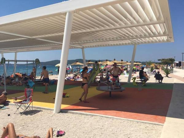 Appartement in een prachtig deel van Brodarica. Uitzicht vanaf het terras op het strand. grote parkeerplaats. Grill in de tuin. naast de grill staat de eettafel in de buurt van alle bijbehorende faciliteiten. Solaris, Sibenik National Parks Krka and Kornati Oscillation Centers, Kinderspeelplaats