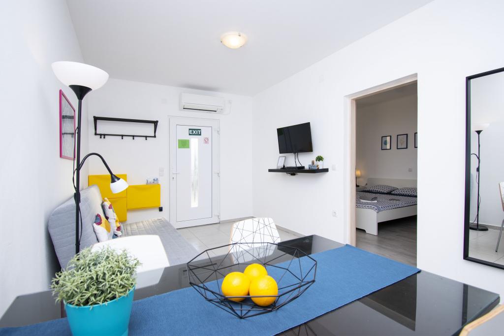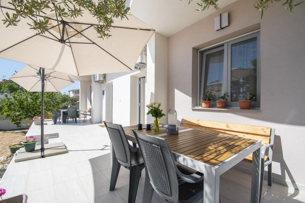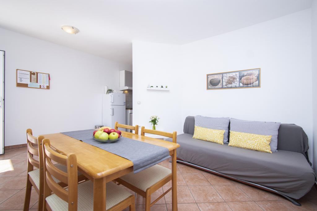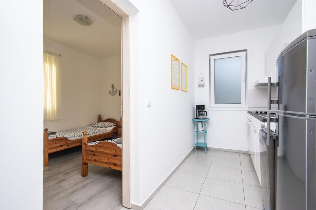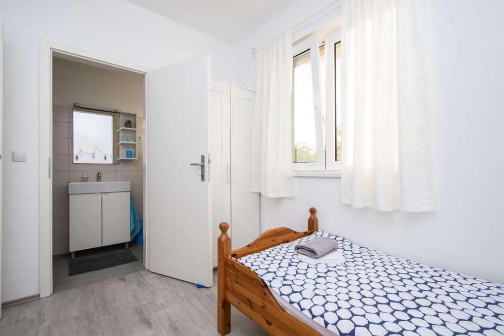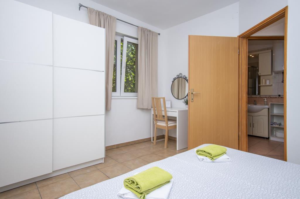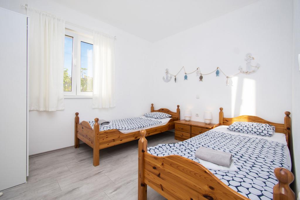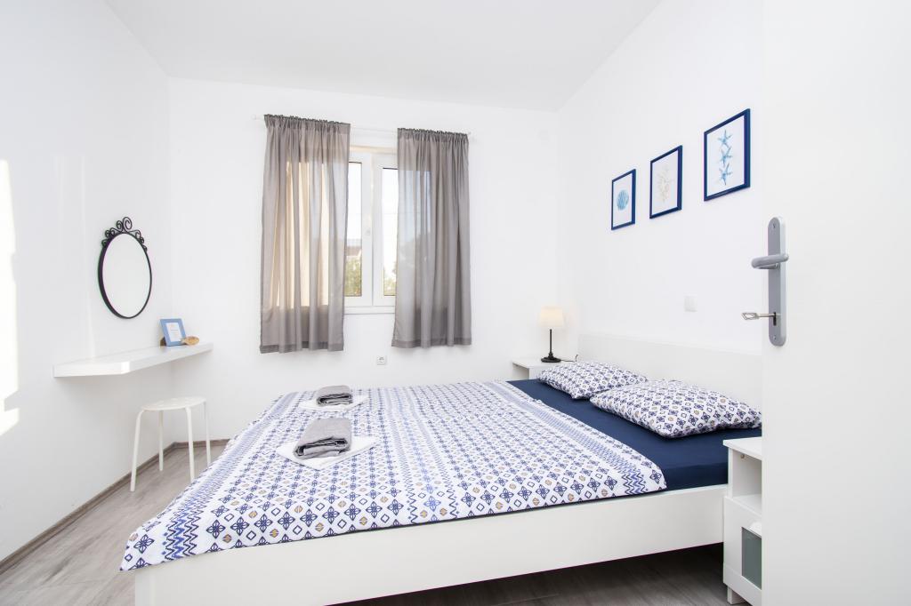 Wij verhuren comfortabele appartementen 2 plus 2 of 4 plus 2, ideaal voor een rustige familievakantie. De appartementen bevinden zich in Brodarica in een privéhuis met een terras en parkeerplaats. Eén appartement bestaat uit een slaapkamer met een tweepersoonsbed, een badkamer en een woonkamer met keuken en eetkamer. De tweede bestaat uit twee slaapkamers met eigen badkamers en een woonkamer met keuken en eetkamer. De keukens zijn uitgerust met een kookgedeelte en een elektrische oven, evenals serviesgoed voor het bereiden en serveren van voedsel. De appartementen zijn voorzien van airconditioning, gratis internet, alle ramen zijn voorzien van horren en beveiligde parkeergelegenheid op het erf. De afstand naar het strand is een minuut lopen door uw eigen tuin. In de buurt is er een bakker, winkels, restaurants, postkantoor, kliniek, busstation met frequente lijnen naar Šibenik.