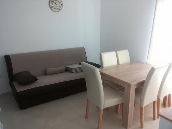 Zeer mooie, schone, nette appartementen, de zee is heel dichtbij. We kwamen aan als een gezin van 4, we huurden alle 4 de appartementen. Wat onaangenaam was, was dat de huisgenoten ons altijd overvielen en zeiden wat we niet moesten doen. De kinderen konden nergens met de bal spelen. Zelfs 's middags moest de muziek zachter worden gezet. Ik was altijd bang als ik het volgende bericht zou krijgen over wat ik NIET moest doen. Helaas heeft dit zijn stempel gedrukt op onze vakantie...