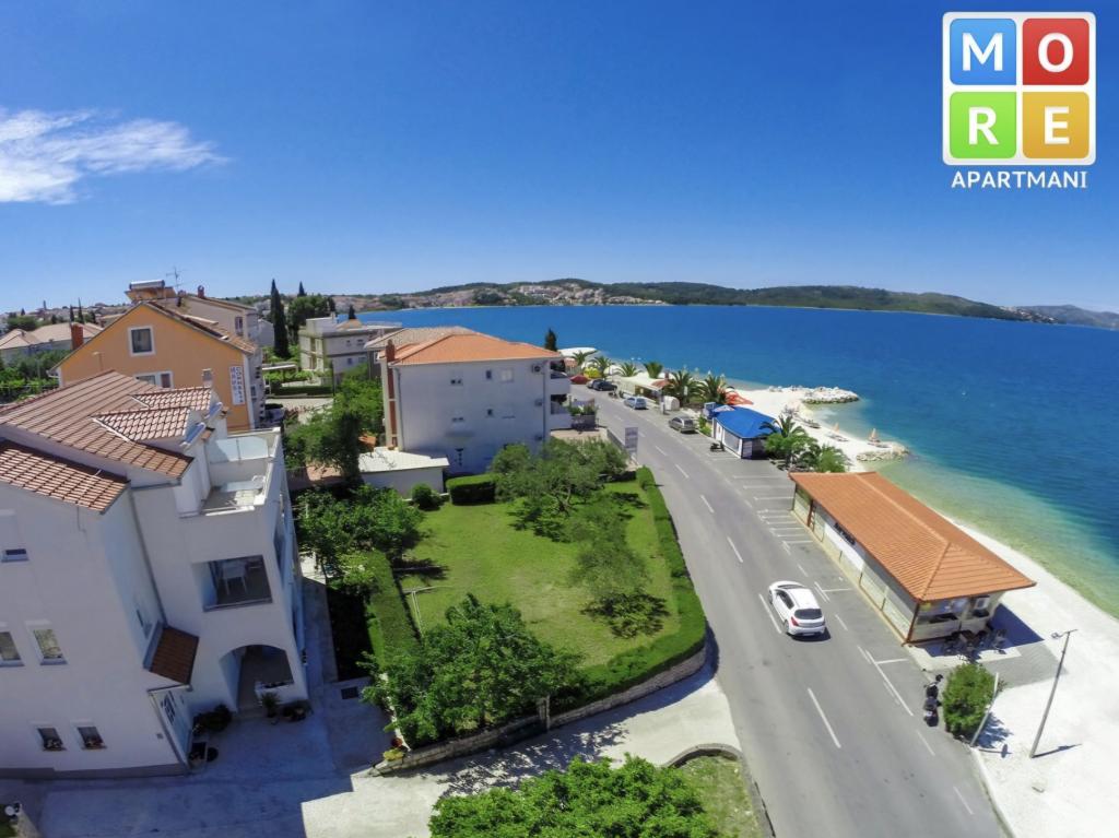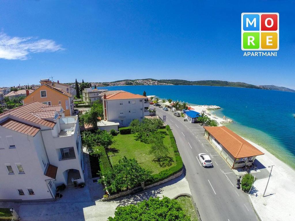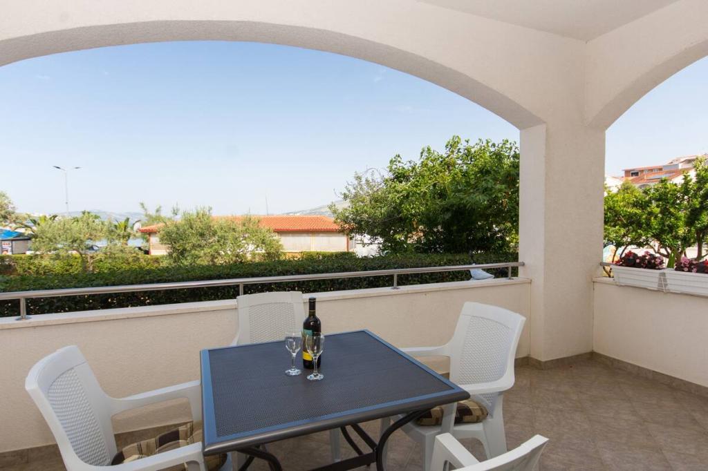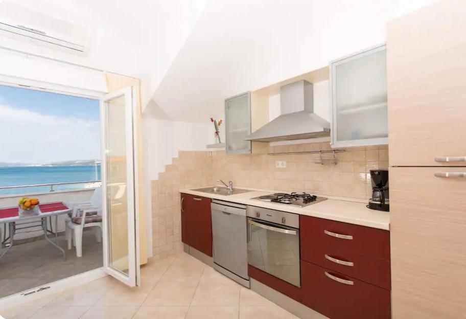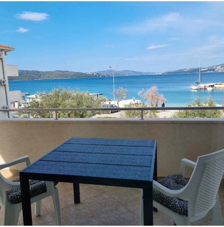 Het appartement ligt op slechts 10 meter van de zee en het strand in Okrug Gornji. Er is een supermarkt, restaurant, koffiebar en vele andere diensten in de buurt. Het ligt ook zeer dicht bij het centrum van Trogir, evenals de jachthaven, het busstation en de luchthaven.