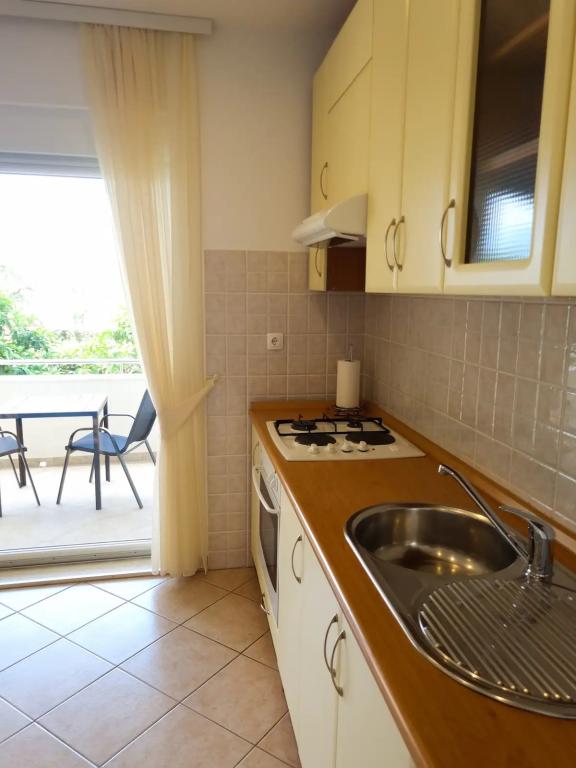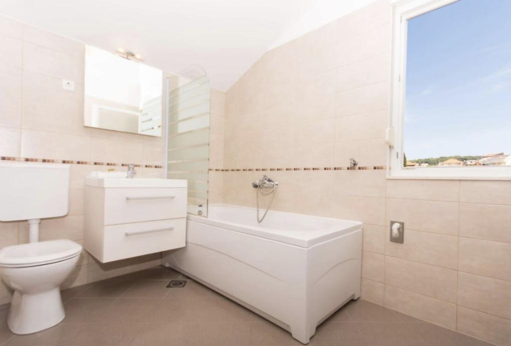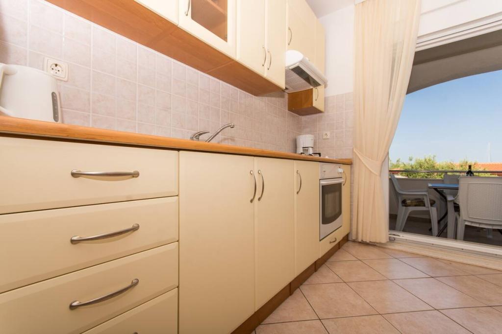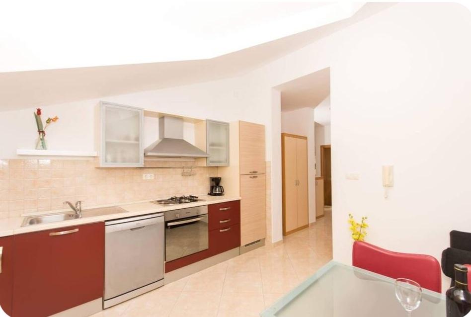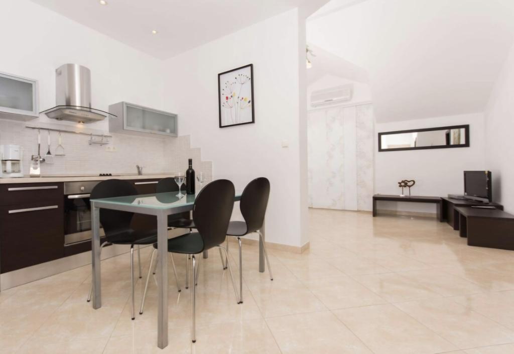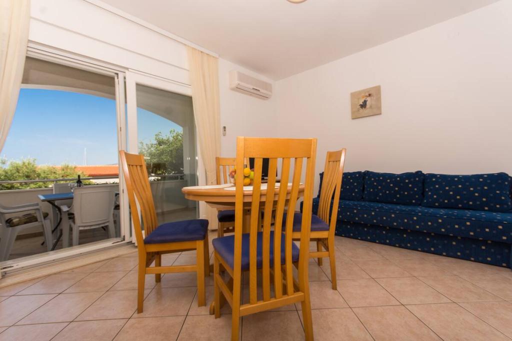 Het appartement ligt op slechts 10 meter van de zee en het strand in Okrug Gornji. Er is een supermarkt, restaurant, koffiebar en vele andere diensten in de buurt. Het ligt ook zeer dicht bij het centrum van Trogir, evenals de jachthaven, het busstation en de luchthaven.