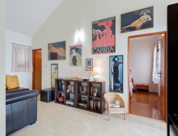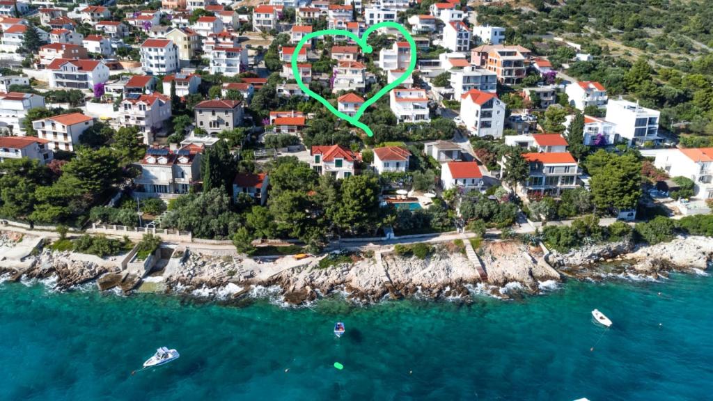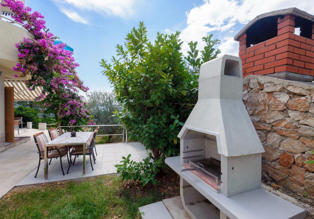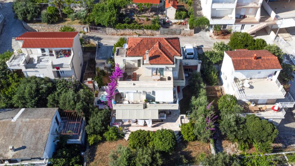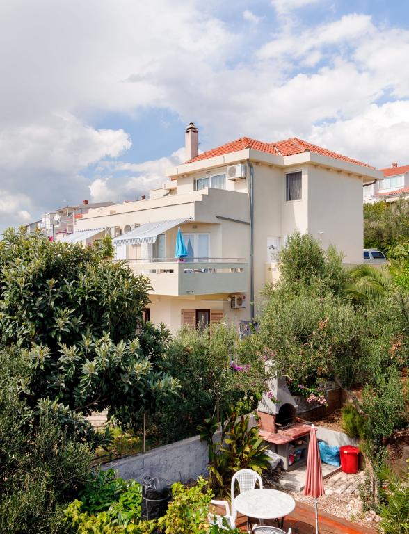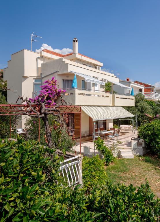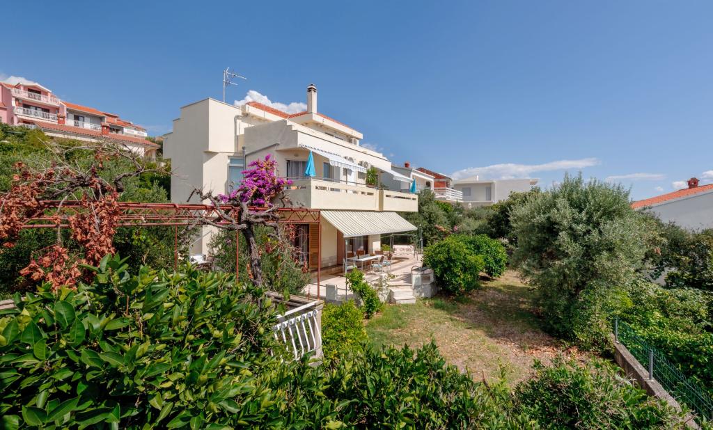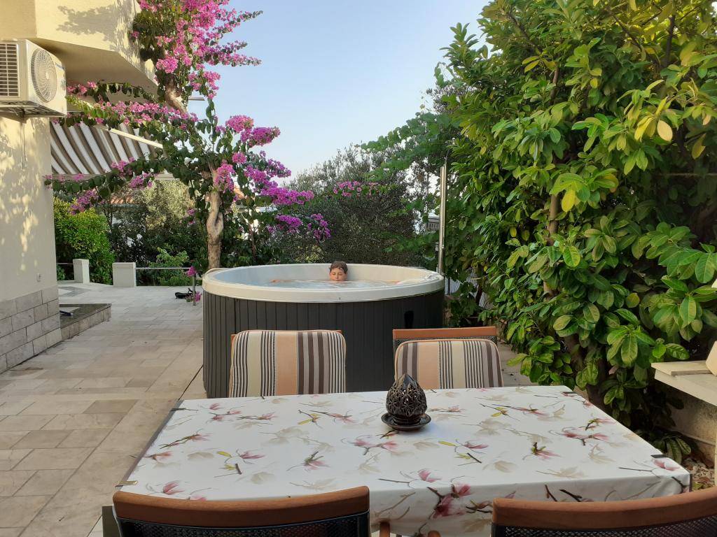 We verbleven in juni een week in het grote appartement op de tweede verdieping, er waren twee volwassenen en twee tieners. Alles was perfect: het weer, de zee, het huis, maar vooral onze liefste Nina, vriendelijk, aardig, behulpzaam, altijd klaar om te helpen, aanwijzingen en suggesties te geven, een drankje aan te bieden. Het appartement is mooi, zeer schoon, comfortabel en uitgerust met alles wat u nodig heeft voor een gezinsvakantie; we voelden ons echt alsof we thuis waren, sterker nog, veel beter! De bedden zijn zeer comfortabel en de kussens zijn geweldig! We hebben zo goed geslapen en uitgerust!! De keuken is goed uitgerust, de badkamer heeft een douche en ook een wasmachine en is erg mooi, maar wat we misschien wel het leukst vonden is het grote terras waar je kon eten, een aperitiefje kon nemen en zelfs kon douchen terwijl je keek de zee en de eilanden ervoor of de fantastische en onvergetelijke zonsondergang! We vulden onze ogen met buitengewone schoonheid! Bovendien is er een jacuzzi in de tuin, evenals een barbecue, beschikbaar voor alle gasten. Nina's vader, geweldige Leo, bood ons een super mega goed diner aan en een super visnjevac (door hem gemaakte zwarte kersenlikeur). De zee is heel dichtbij, de eerste stranden liggen op 100 meter afstand, je kunt er gemakkelijk te voet naartoe, de zee is PRACHTIG, de kleuren groen, blauw, turkoois, de bedwelmende geur van de zeedennen, het gezang van de onvermoeibare krekels. Er zijn niet veel mensen (althans niet in juni), dus de ontspanning is totaal! De stranden zijn rotsachtig (uitstekend om te duiken) en het gebruik van zeeschoenen wordt aanbevolen (of zelfs witte kiezelstenen - het zeer nabijgelegen en beroemde Vela Draga-strand). Ook een bezoek aan Trogir (5 km) en Split (25 km) is een absolute aanrader. Het was allemaal zo mooi dat we niet meer weg wilden en volgend jaar ook graag terug willen komen. Bedankt Nina, voor alles!