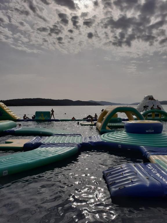 Inlusief wel Toeristenbelasting. Boekingsbevestigingsdocument bij reserveringDe Kroatische Adriatische parel van indrukwekkende geschiedenis, de stad Trogir, op de UNESCO Werelderfgoedlijst, ligt op slechts 5 kilometer van u. Aan de andere kant ligt Split, dat met de auto of per boot te bereiken is, op slechts 20 km afstand. Deze stad Diocletianus dateert uit de 4e eeuw na Christus en staat sinds 1979 onder bescherming van UNESCO, een uniek voorbeeld in de wereld. De schoonheid van de zeven watervallen van travertijn, een natuur- en karstfenomeen van het Krka National Park (50 km), zal zeker voor altijd in je geheugen blijven. Talrijke exploitanten op het eiland bieden excursiediensten aan naar nabijgelegen eilanden en lagunes. Een duikschool is ook vlakbij. In de directe omgeving van ons appartement, ondergedompeld in een dennenbos, ligt het prachtige Witte Strand (Vela Draga).