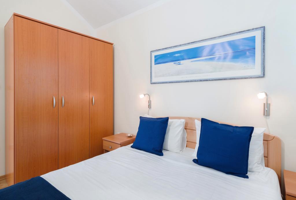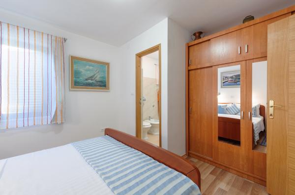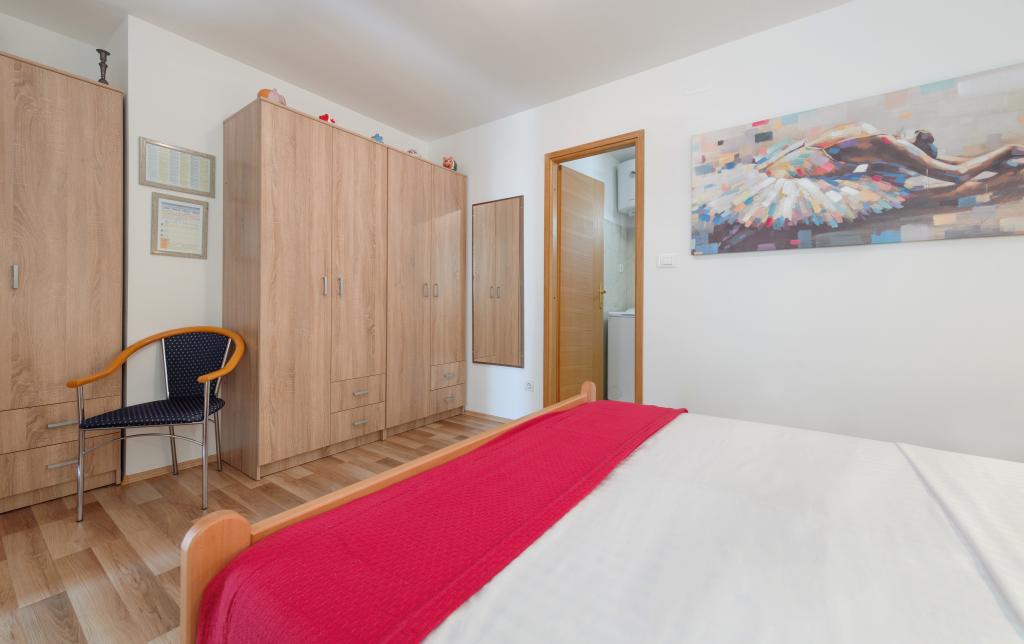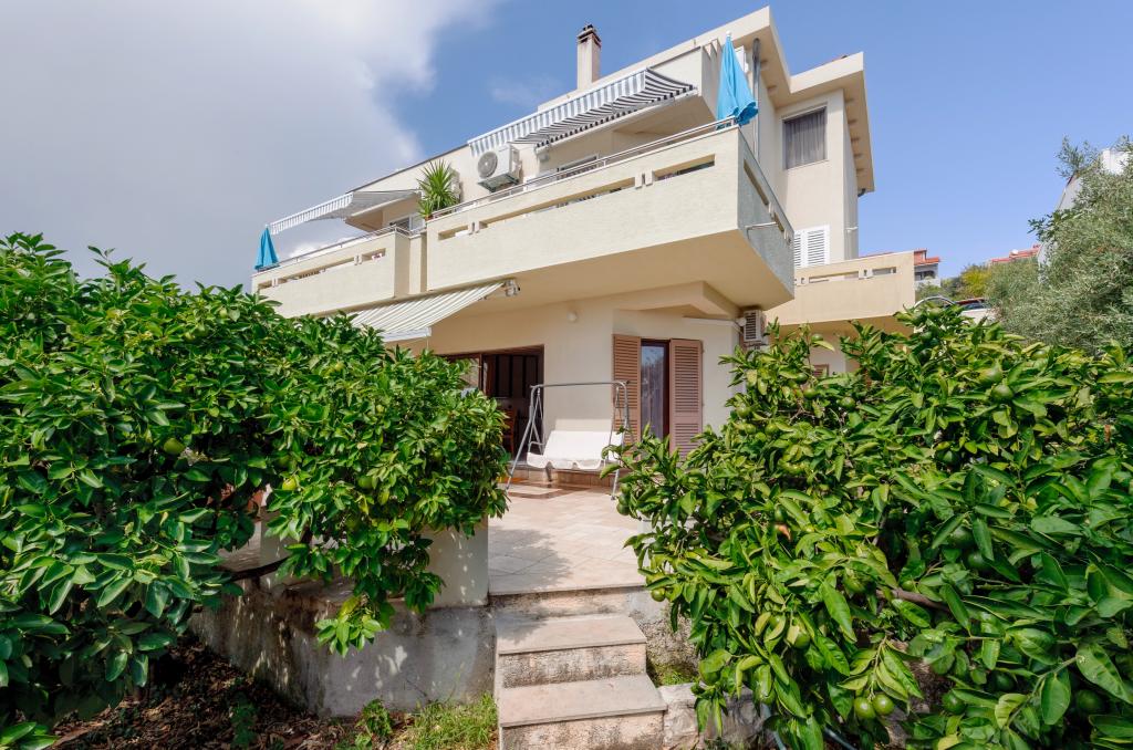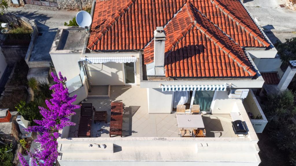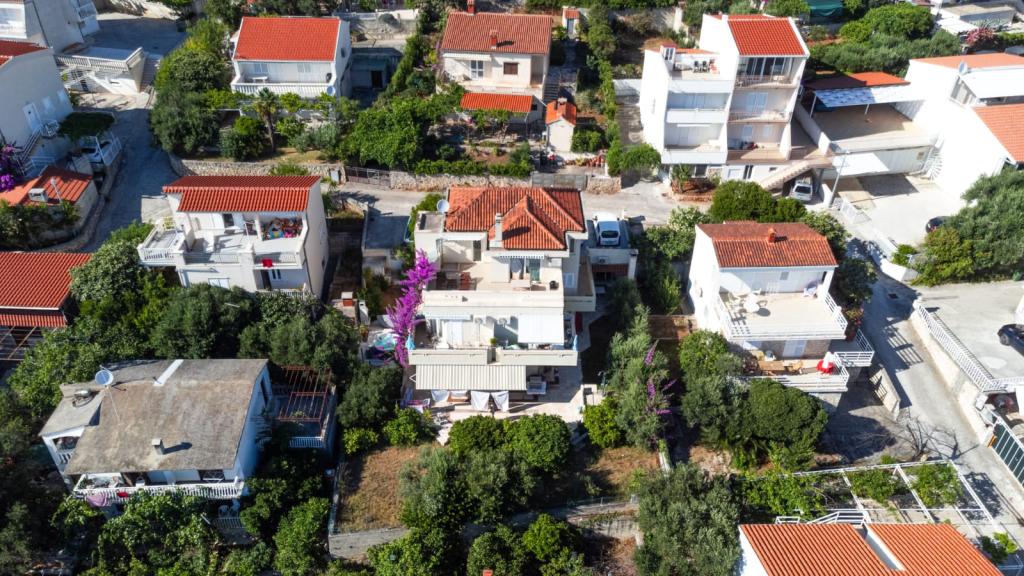 In de directe omgeving van de zee en het dennenbos, aan de zuidkant van het eiland Čiovo, twee appartementen op de eerste verdieping van een gezinswoning, met uitzicht op de eilanden Brač, Hvar, Šolta, Drvenik en oneindigheid. Beide appartementen zijn luchtig, georiënteerd op het zuiden en oosten (Levante) en west (Ponente), uitgerust met hoogwaardige materialen en toestellen. Een slaapkamer met essentiële lijnen, met een bed van 160x200 cm, een eersteklas matras en een topmatras gevuld met traagschuim, en natuurlijk goed gekozen beddengoed, garanderen uw comfort. De badkamer is zo ingericht dat u gegarandeerd niets hoeft te missen. Extra ontspanning zal zeker worden geholpen door een gezellige woonkamer met een bank (met de mogelijkheid van een slaapbank), een 40\\ tv en een keuken waar u uw favoriete recepten kunt opslaan. Een balkon voor koffie in de ochtend en een aperitief in de avond, de mogelijkheid om een gedeelde grill te gebruiken, een tuintafel en een buitendouche zullen zeker uw goede zomerstemming garanderen. We zijn er, u bent slechts één klik van ons verwijderd!