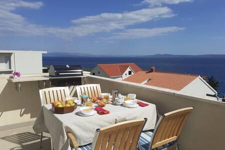 Een zeer mooi ingericht en ruim appartement met een prachtig uitzicht op zee en een groot terras waar je de hele avond kunt genieten als je geen zin hebt om uit te gaan. Het appartement bevat alles wat je nodig hebt. Na een lange reis werden we begroet met koude versnaperingen en vijgen in de koelkast, wat alleen maar spreekt van de zorg voor de gasten. De eigenaresse Nina is erg aardig en als je aanvullende informatie nodig hebt zal ze je zeker helpen. Een perfecte bestemming voor een rustigere vakantie. Heel erg bedankt voor alles!