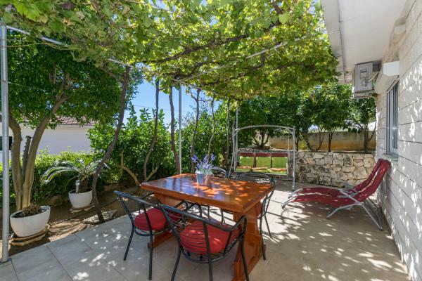 Volledig ingerichte, comfortabele appartementen met een prachtig uitzicht op de eilanden Brac, Hvar, Solta en Drvenik. Elk appartement heeft een terras voor de gasten om te genieten van het uitzicht op de zeestraat en de passerende schepen, die u ademloos, zowel overdag als 's nachts. De appartementen worden omgeven door prachtige groene tuin met meer dan 22 soorten fruit, zodat de gasten hebben hun eigen privé-paradijs. Het strand ligt op slechts een paar minuten lopen van het huis. Het is ideaal voor volwassenen en kinderen omdat het een dieper en ondieper gedeelte van de ingang. Ook op het strand is er een café en een tabakswinkel met ijs, zodat u kunt uzelf verfrissen van de sterke zon. Al onze parkeerplaatsen. De appartementen zijn volledig ingericht, gemoderniseerd, en altijd streven naar nieuwe toevoegingen die we versterken onze gasten blijven.