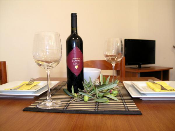 Zijn blij om onze vier appartementen gelegen aan de zuidkant van Ciovo de buurt van de stad Trogir in Okrug Gornji presenteren. Het is een van de meest aantrekkelijke toeristische bestemmingen in Kroatië, met 2670 zonuren per jaar. De nabijgelegen stad Trogir (2 km) en Split (30 km) die onder de bescherming van UNESCO, biedt de mogelijkheid om meer dan 2000 jaar oude sporen cultuur. U bent van harte welkom in onze appartementen met uitzicht op het midden van de Dalmatische eilanden Brac en Solta, waar u een ontspannen sfeer gevuld met comfort en privacy vindt. Moderne en twee-slaapkamer appartementen met airconditioning Luce en Maja en appartementen met één slaapkamer Marin en DUJE bieden een aangenaam verblijf. In de buurt van het strand (80 m), met uitzicht op de Adriatische Zee. Alle appartementen zijn volledig uitgerust met satelliet-tv, WiFi flat rate internet verbinding al in de prijs inbegrepen. De standaarduitrusting omvat beddengoed, handdoeken, keuken krpe.Voda in het huis is veilig om leidingwater te drinken. Eigen parkeergelegenheid beschikbaar (één per appartement). U bent van harte uitgenodigd om hun vakantie door te brengen in onze appartementen om te genieten van de mediterrane sfeer en de prachtige kristalheldere wateren ..
