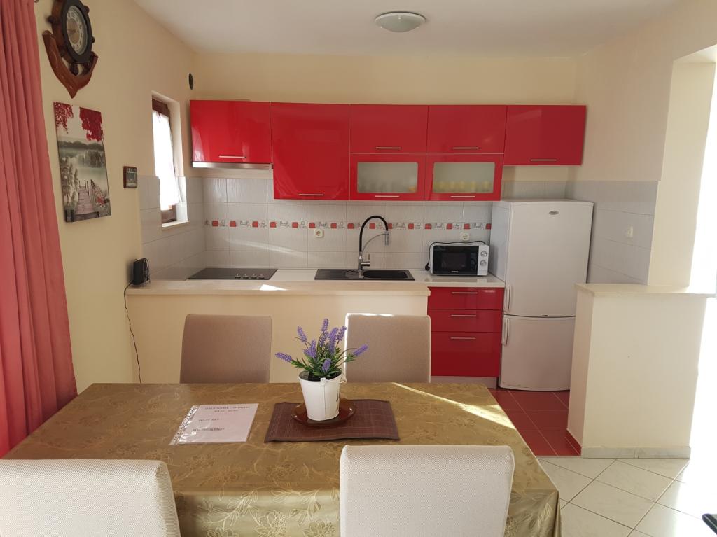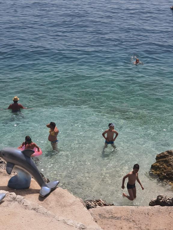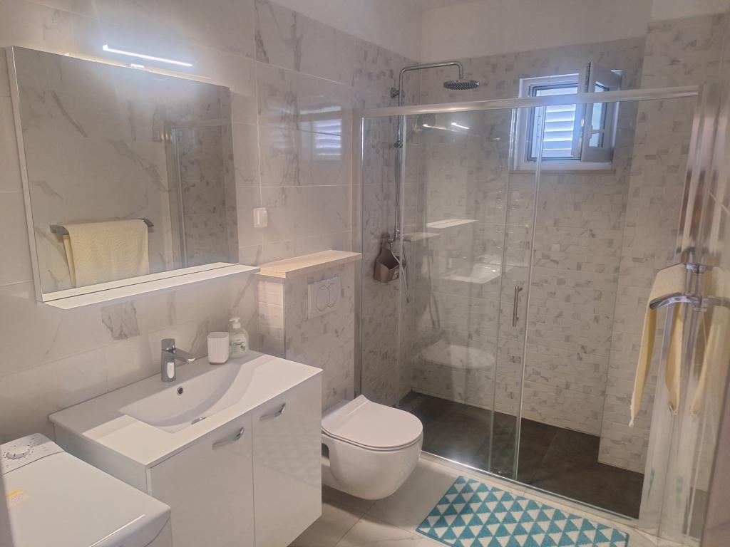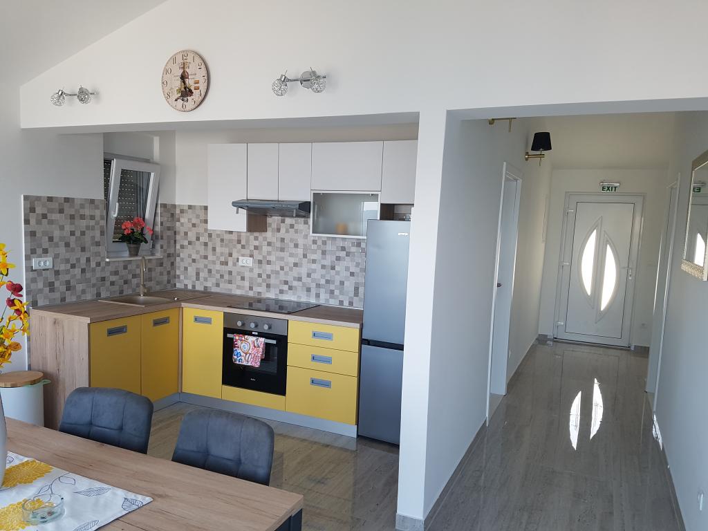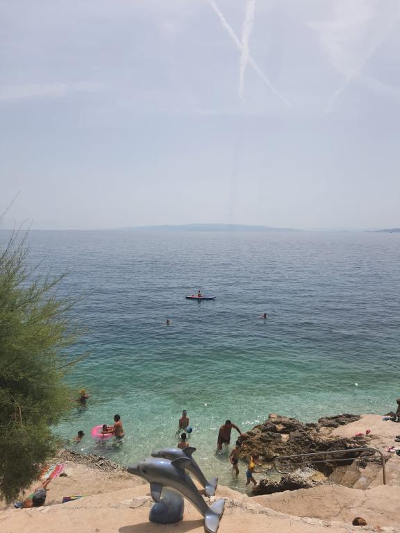 Het appartement was netjes en schoon bij aankomst, volledig in lijn met de foto's en beschrijving van de advertentie. Het is ruim, modern en aangenaam om in te verblijven, de bedden zijn zeer comfortabel, de keuken is goed uitgerust en het grote terras met een prachtig uitzicht laat een bijzondere indruk achter. Een extra pluspunt is de beveiligde, afgesloten parkeerplaats. De locatie is geweldig, het strand ligt op slechts 2 minuten lopen. Hoewel het rotsachtig is, beviel het ons prima, en er zijn geschikte stranden voor kinderen in de buurt die gemakkelijk te voet bereikbaar zijn. Daarnaast biedt het eiland nog veel meer stranden, dus er is keuze genoeg. Er is een grote Tommy-markt in de directe omgeving en het centrum van Okrug met een apotheek, bakker, postkantoor en alle andere voorzieningen is ook vlakbij. De stad Trogir is gemakkelijk bereikbaar, met de auto of boot, waar u uitgebreid kunt winkelen of de stad kunt verkennen. De gastheer en gastvrouw waren erg vriendelijk en altijd bereikbaar, maar toch onopvallend. Dat was voor ons heel handig. Al met al voldeden het appartement en de gastheren volledig aan onze verwachtingen en voldeden ze volledig aan de verwachtingen. We raden het zeker aan!