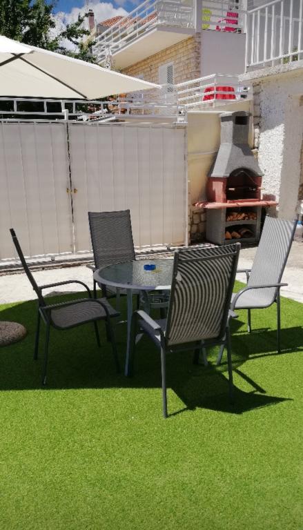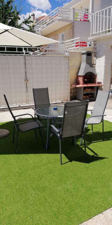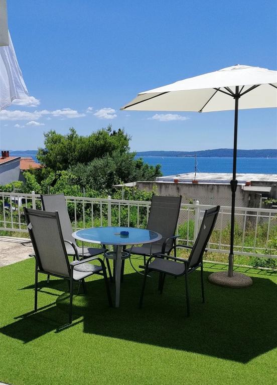 Volledig en modern ingericht appartement in een rustig deel van de zuidkant van het eiland Ciovo, dat is verbonden door bruggen. Het appartement ligt op 70 meter van het strand, volledig bedekt met muskietennetten, er is een barbecue in de ruime tuin ... cafés en restaurants liggen op 200 meter, naar Trogir is 5 km, naar Split 30 km.