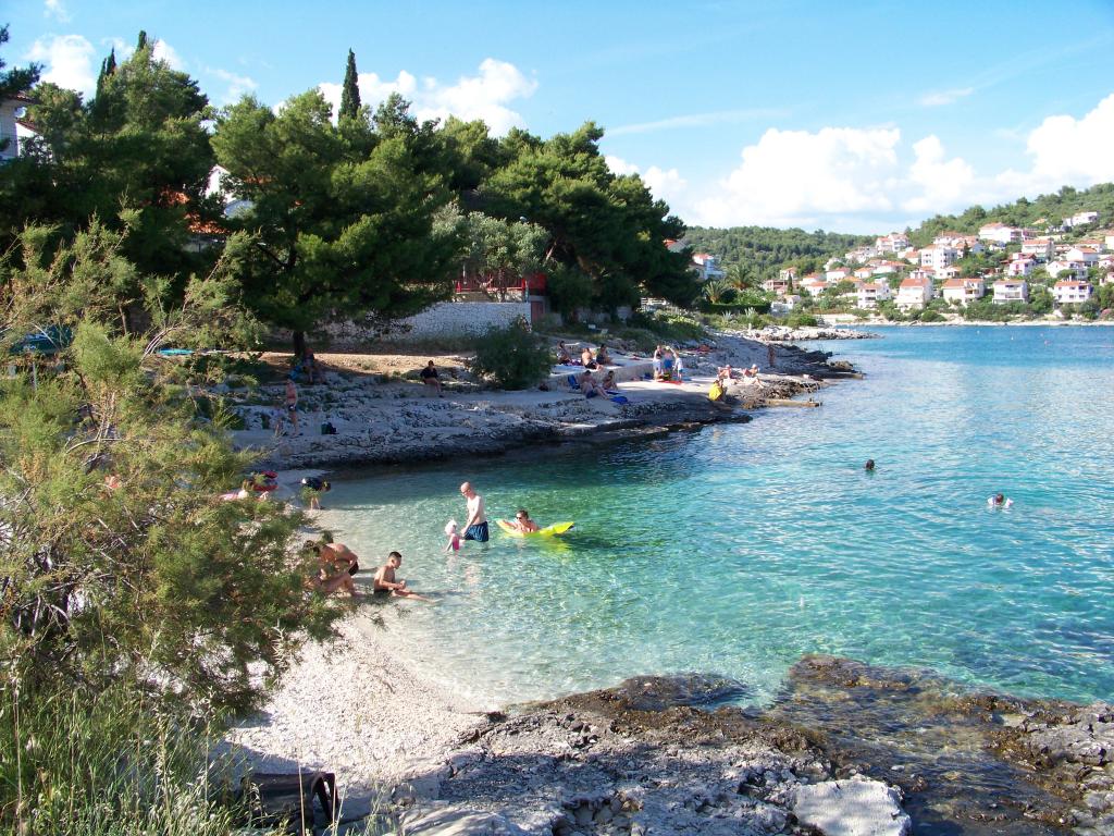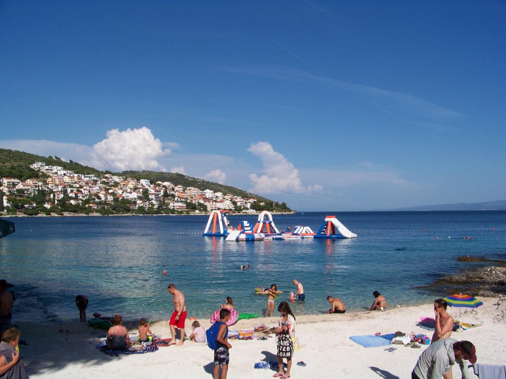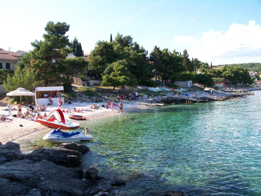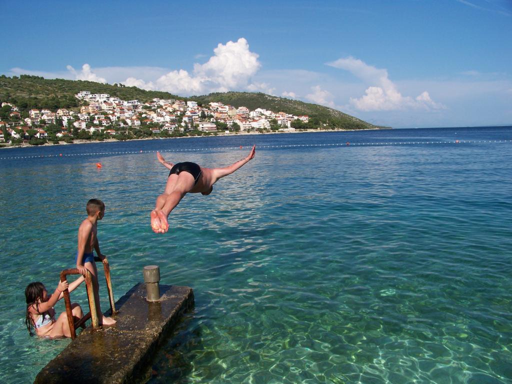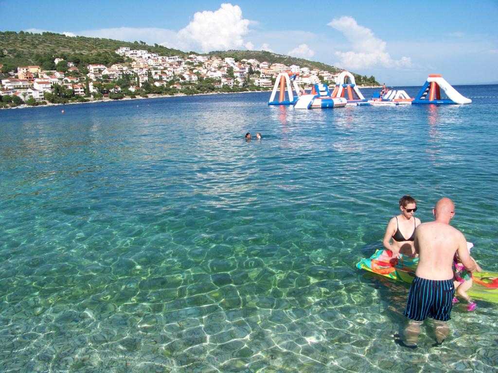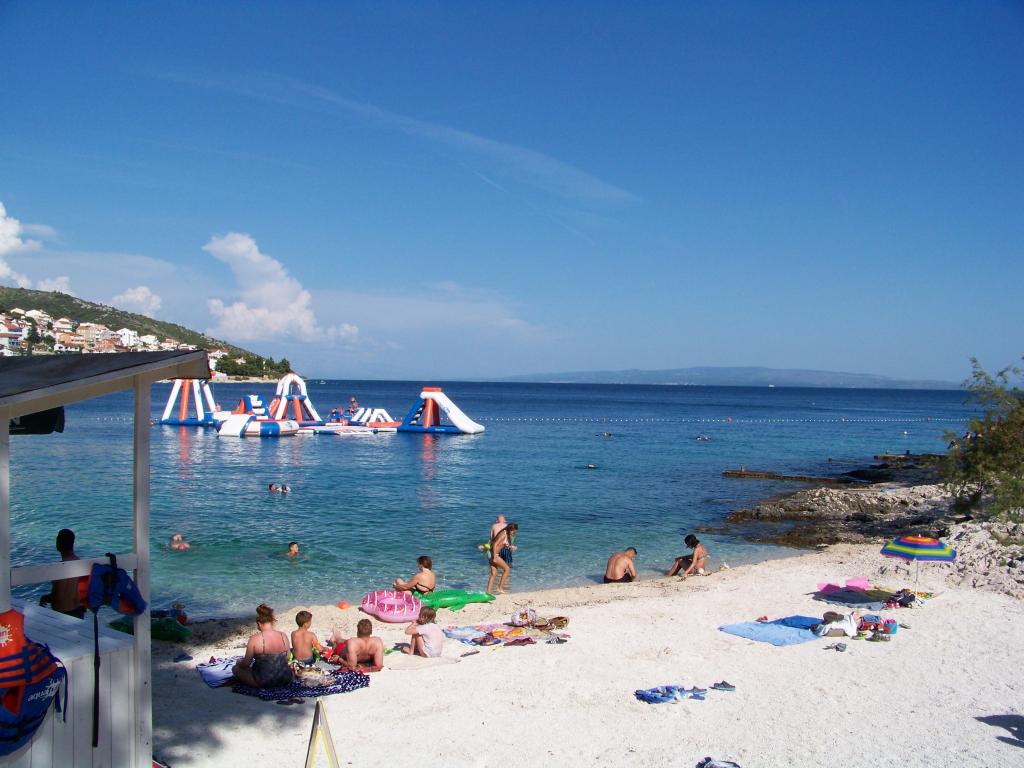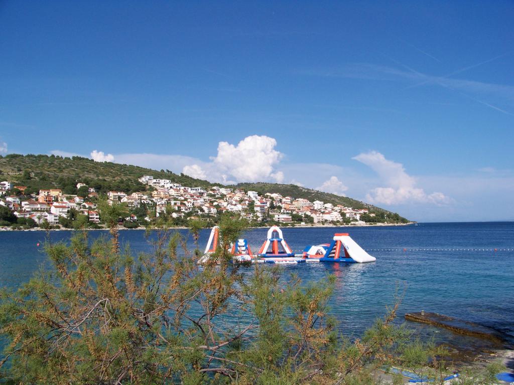 Ciovo, zuidzijde, baai van Mavarštica, wij verhuren nieuwe appartementen voor 3-4 personen, met SAT LED Samsung TV 32 (82 cm), DVD, Magnetron, Blender, Airconditioning, Wi-Fi snel optisch internet. Alle appartementen beschikken over een eigen parkeerplaats in de schaduw, een barbecue en liggen op slechts 50 m van het strand (zie foto), geschikt voor kleine kinderen. De appartementen liggen op 4 km van Trogir, een monumentenstad die onder bescherming van UNESCO staat. Alle appartementen beschikken over een groot terras met uitzicht op zee en er is nog een balkon bij de slaapkamer. De afstand tot het dichtstbijzijnde restaurant bedraagt 70 m. De afstand tot het aquapark bedraagt 100 m. De afstand tot de dichtstbijzijnde winkel bedraagt slechts 400 m. De dichtstbijzijnde apotheek, geldautomaat, grote supermarkt, markt en geldautomaat bevinden zich op 900 m afstand. U kunt gratis gebruikmaken van: een tuinschommel, een grote houten kinderschommel, een extra tuindouche, een bankje bij de barbecue en een parasol voor op het terras. Gasten hebben in de tuin de beschikking over een Sponeta tafeltennistafel met een set rackets en elektronische darts. Pools, Duits, Engels, Frans, Spaans, Italiaans... gratis satellietprogramma's kunnen op de Smart TV worden bekeken en daarnaast is de GoNet TV (Lepša TV)-app geïnstalleerd, waarmee gasten Sloveense, Tsjechische, Slowaakse, Hongaarse en Oekraïense programma's kunnen bekijken.