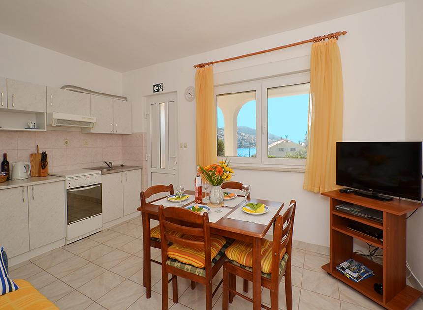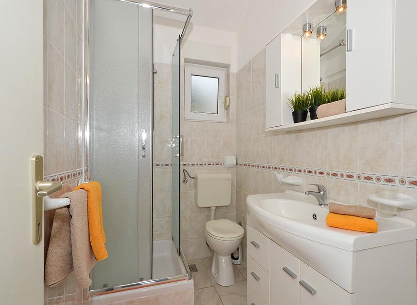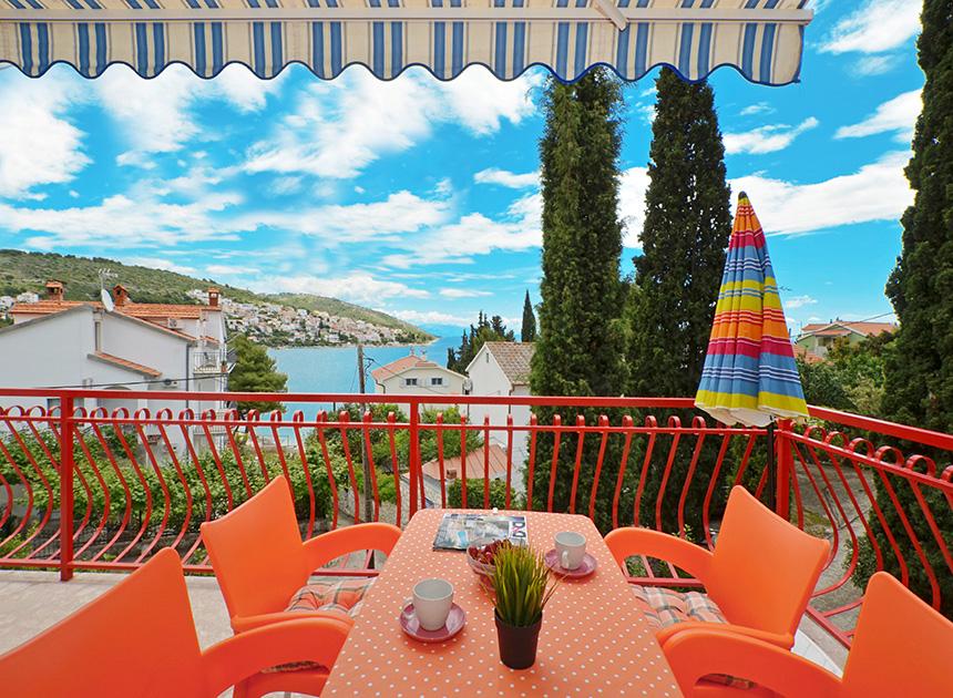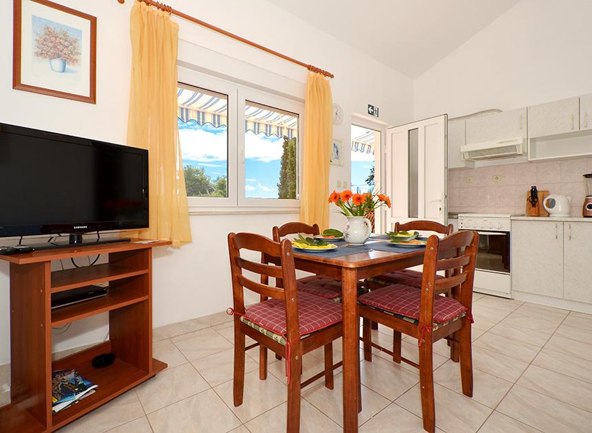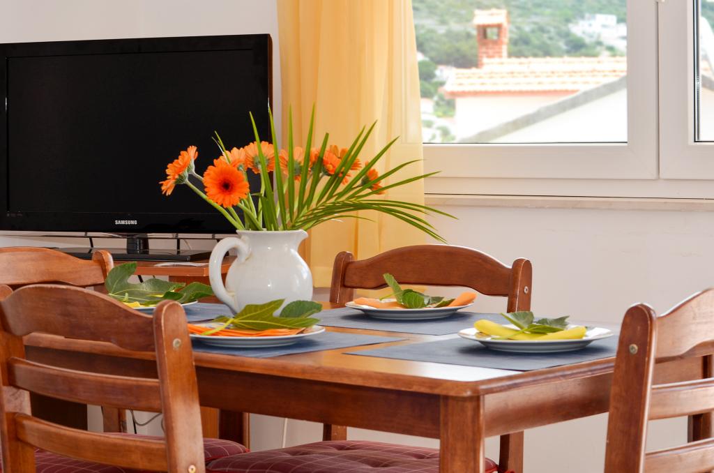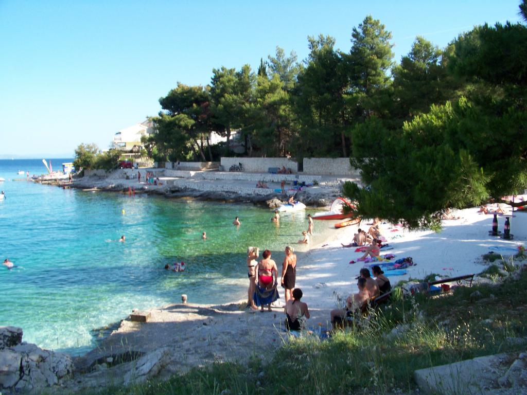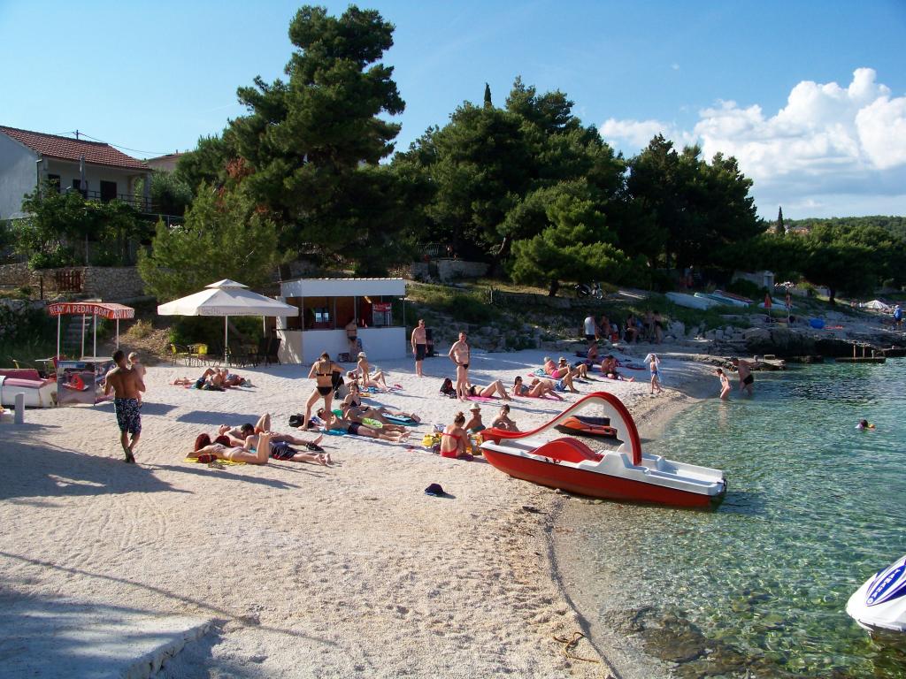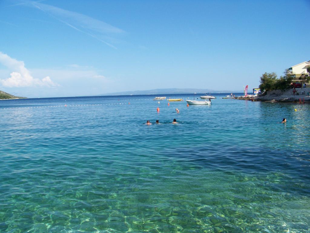 Ciovo, zuidzijde, baai van Mavarštica, wij verhuren nieuwe appartementen voor 3-4 personen, met SAT LED Samsung TV 32 (82 cm), DVD, Magnetron, Blender, Airconditioning, Wi-Fi snel optisch internet. Alle appartementen beschikken over een eigen parkeerplaats in de schaduw, een barbecue en liggen op slechts 50 m van het strand (zie foto), geschikt voor kleine kinderen. De appartementen liggen op 4 km van Trogir, een monumentenstad die onder bescherming van UNESCO staat. Alle appartementen beschikken over een groot terras met uitzicht op zee en er is nog een balkon bij de slaapkamer. De afstand tot het dichtstbijzijnde restaurant bedraagt 70 m. De afstand tot het aquapark bedraagt 100 m. De afstand tot de dichtstbijzijnde winkel bedraagt slechts 400 m. De dichtstbijzijnde apotheek, geldautomaat, grote supermarkt, markt en geldautomaat bevinden zich op 900 m afstand. U kunt gratis gebruikmaken van: een tuinschommel, een grote houten kinderschommel, een extra tuindouche, een bankje bij de barbecue en een parasol voor op het terras. Gasten hebben in de tuin de beschikking over een Sponeta tafeltennistafel met een set rackets en elektronische darts. Pools, Duits, Engels, Frans, Spaans, Italiaans... gratis satellietprogramma's kunnen op de Smart TV worden bekeken en daarnaast is de GoNet TV (Lepša TV)-app geïnstalleerd, waarmee gasten Sloveense, Tsjechische, Slowaakse, Hongaarse en Oekraïense programma's kunnen bekijken.
