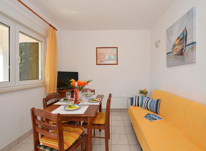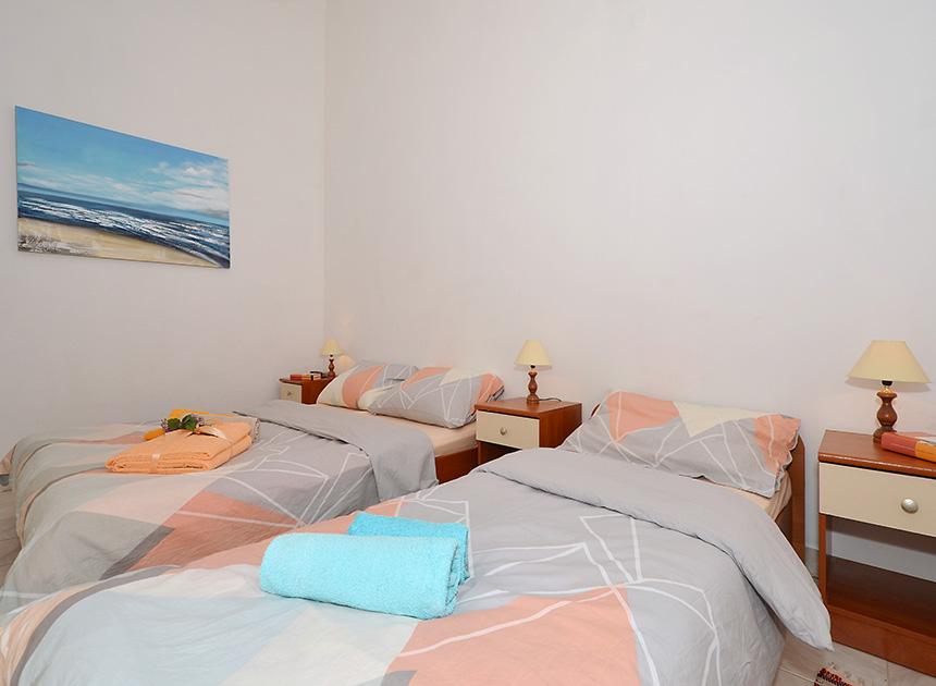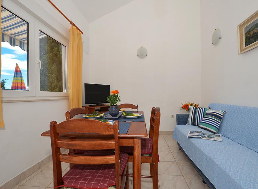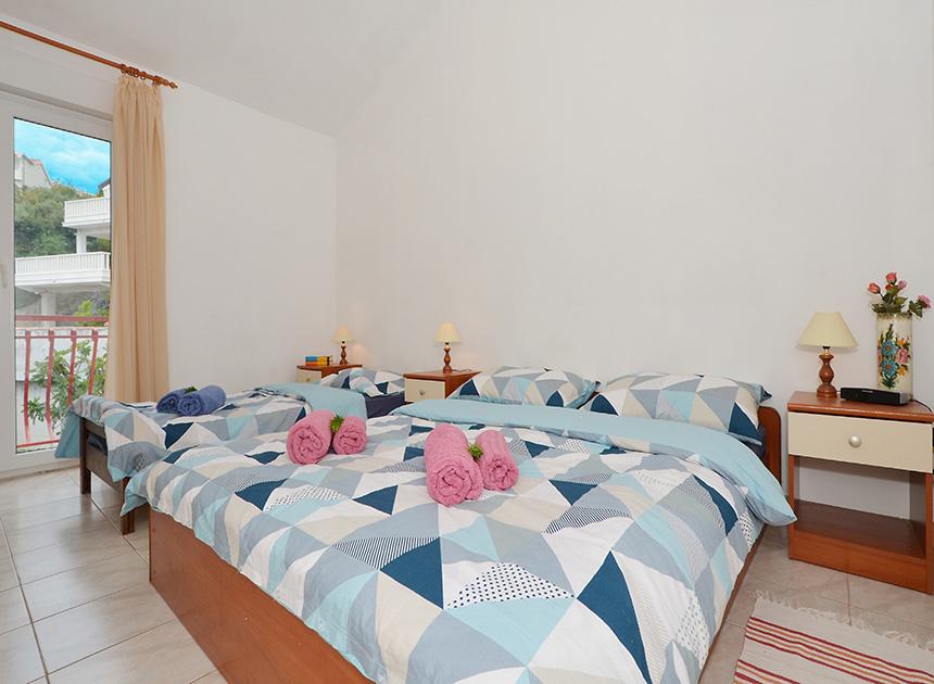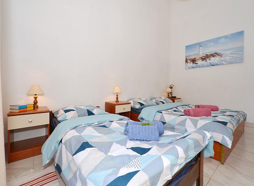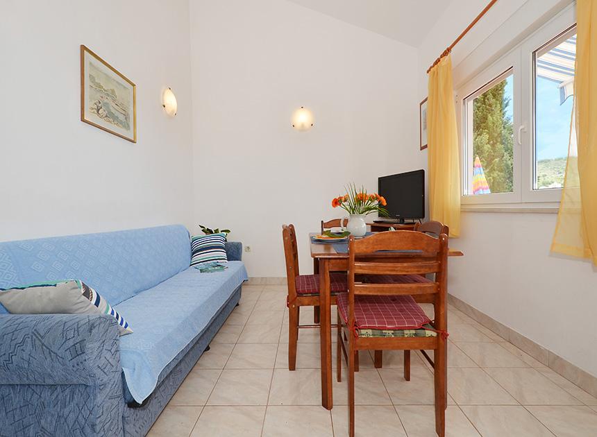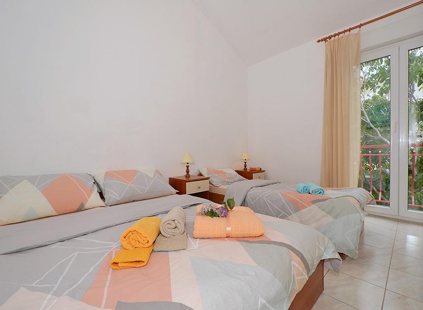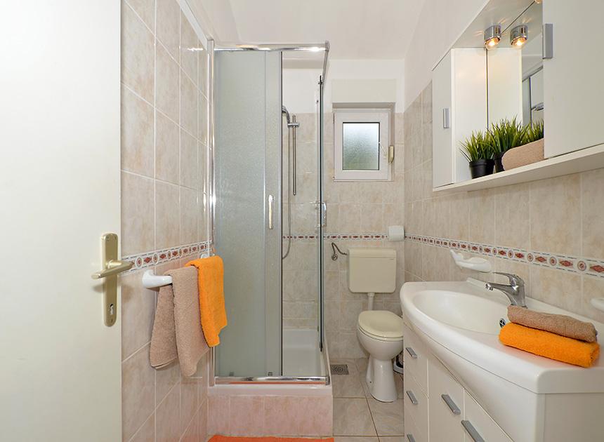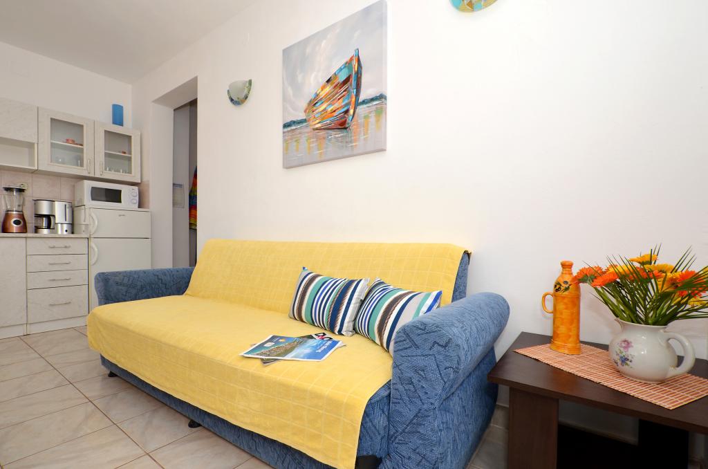 Ciovo, zuidzijde, baai van Mavarštica, wij verhuren nieuwe appartementen voor 3-4 personen, met SAT LED Samsung TV 32 (82 cm), DVD, Magnetron, Blender, Airconditioning, Wi-Fi snel optisch internet. Alle appartementen beschikken over een eigen parkeerplaats in de schaduw, een barbecue en liggen op slechts 50 m van het strand (zie foto), geschikt voor kleine kinderen. De appartementen liggen op 4 km van Trogir, een monumentenstad die onder bescherming van UNESCO staat. Alle appartementen beschikken over een groot terras met uitzicht op zee en er is nog een balkon bij de slaapkamer. De afstand tot het dichtstbijzijnde restaurant bedraagt 70 m. De afstand tot het aquapark bedraagt 100 m. De afstand tot de dichtstbijzijnde winkel bedraagt slechts 400 m. De dichtstbijzijnde apotheek, geldautomaat, grote supermarkt, markt en geldautomaat bevinden zich op 900 m afstand. U kunt gratis gebruikmaken van: een tuinschommel, een grote houten kinderschommel, een extra tuindouche, een bankje bij de barbecue en een parasol voor op het terras. Gasten hebben in de tuin de beschikking over een Sponeta tafeltennistafel met een set rackets en elektronische darts. Pools, Duits, Engels, Frans, Spaans, Italiaans... gratis satellietprogramma's kunnen op de Smart TV worden bekeken en daarnaast is de GoNet TV (Lepša TV)-app geïnstalleerd, waarmee gasten Sloveense, Tsjechische, Slowaakse, Hongaarse en Oekraïense programma's kunnen bekijken.