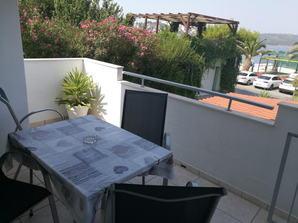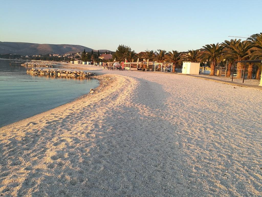 Appartement met uitzicht op zee gelegen in een gezinswoning, die is gelegen op 5 meter van het mooie zandstrand, dat voor sport en recreatie veel mogelijkheden biedt. Op het strand zijn er tal van restaurants en cocktailbars, en daar kunt u ook boten, jetski's, scooters huren .... Vanaf UNESCO Trogir ligt op 2 km afstand en het kan gaan met de boot, die elke 15 minuten vertrekt. Vanwege de nabijheid van alles, kunt u vergeet de auto. De appartementen zijn uitgerust met satelliet-tv en internet. Aan de voorzijde is een grote tuin en gratis parkeergelegenheid, en voor alle andere gastheren zijn altijd tot uw beschikking.