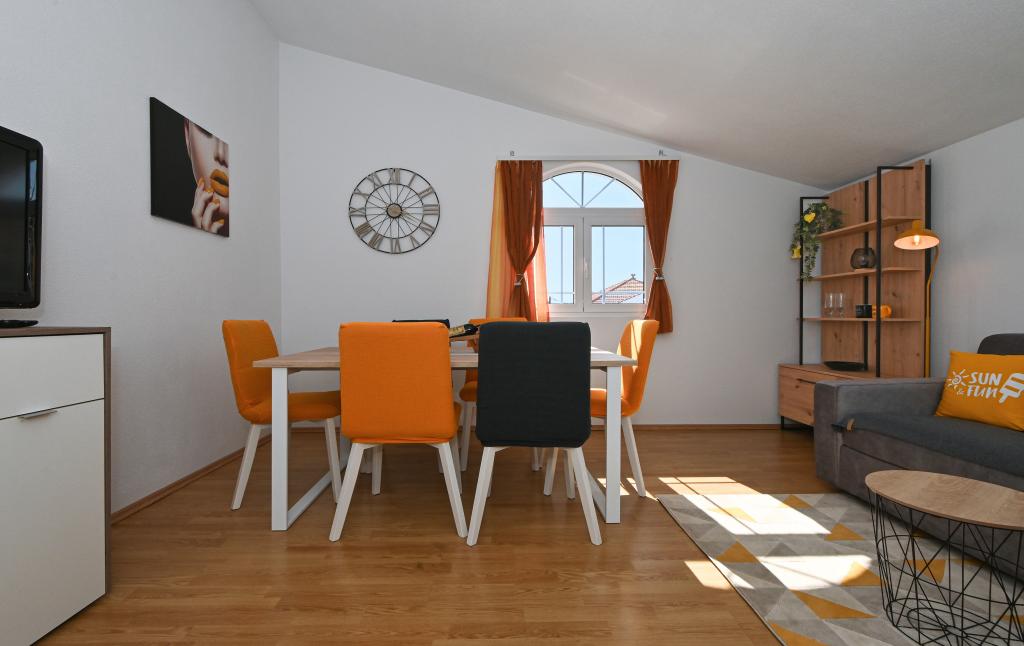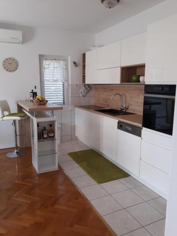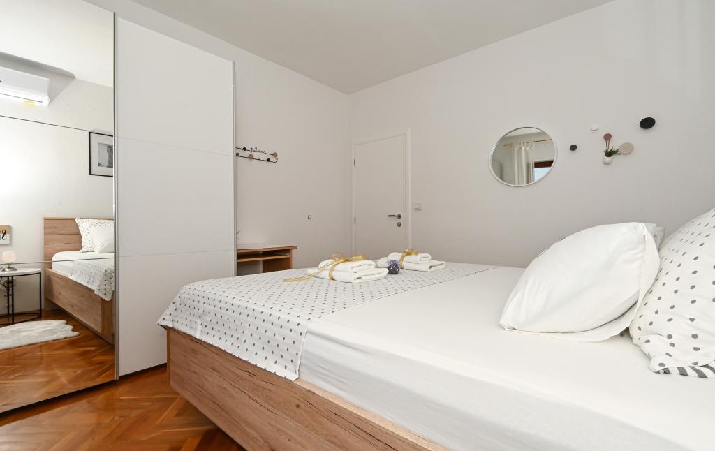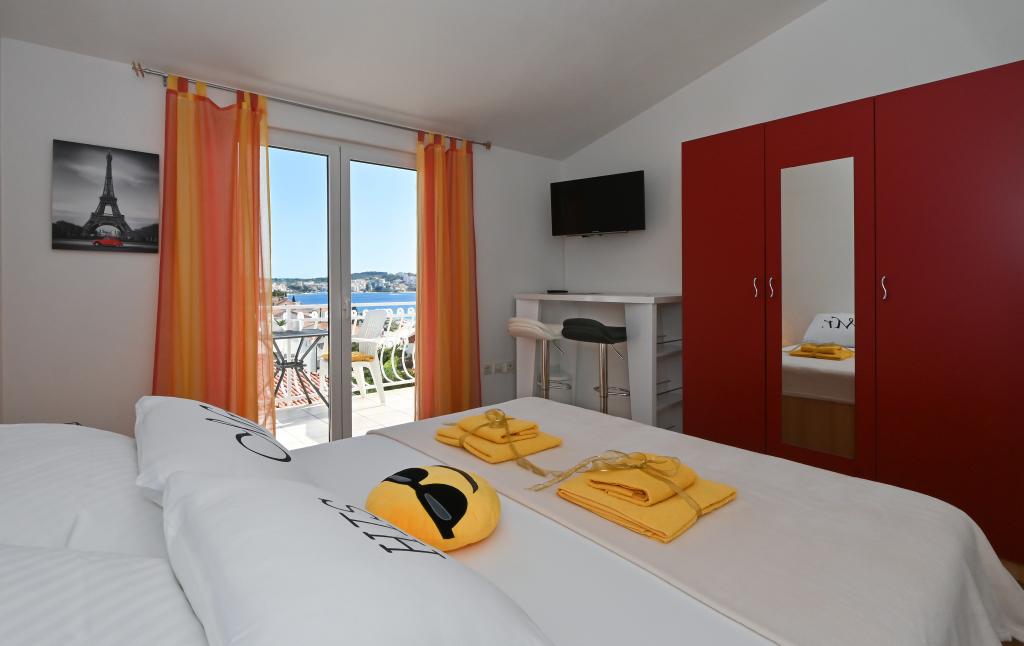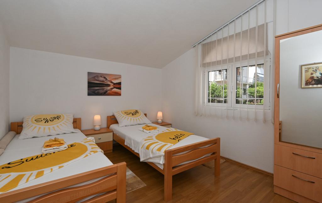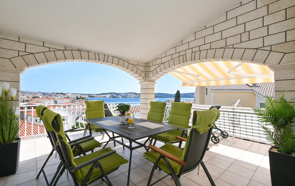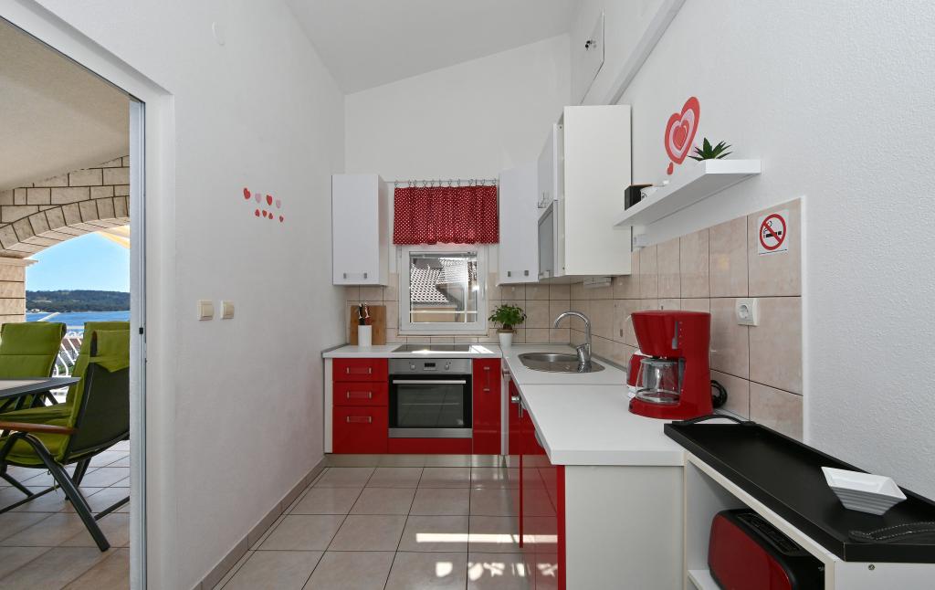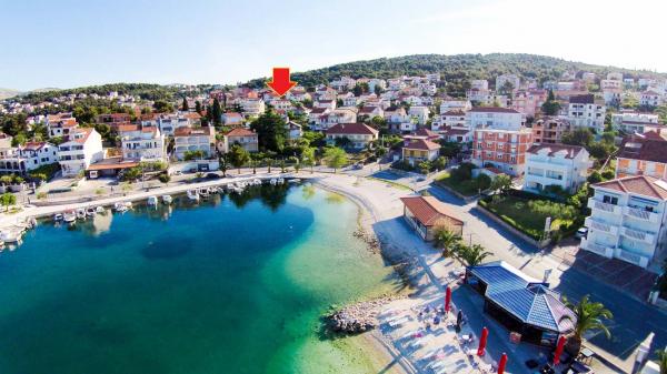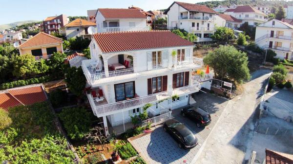 Villa Ljube ligt in de directe omgeving van de autocamping Rožac, op 1,5 km van het centrum van Trogir. De totale capaciteit van Villa Ljuba is 15 personen. De appartementen zijn uitgerust met satelliet-tv en draadloos internet. Gasten kunnen de grill binnen de faciliteit gebruiken. Op de eerste verdieping van de Villa bevindt zich een groot appartement met een prachtig uitzicht op zee. Het appartement heeft een ruim balkon met uitzicht op zee. Op de tweede verdieping is er een appartement van modern design met een ruim terras dat plaats biedt aan 8 personen. De eigenaren van het huis wonen op de begane grond en staan altijd klaar om alle vragen te beantwoorden en hulp te bieden. Het balkon biedt een prachtig uitzicht over de zee en de hele baai. Villa Ljube ligt op 150 m van het strand.De villa ligt in een rustige zijstraat zonder al te veel lawaai en verkeer.