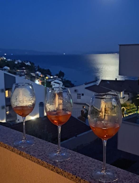 Moderne en eigentijds ingerichte appartementen met zwembad in Okrug Gornji, aan de zuidkant van Čiovo, hebben een prachtig uitzicht op de zee en de eilanden Šolta, Brać en Hvar. De faciliteit ligt op 10 minuten lopen naar het strand, op 15 minuten lopen naar het stadscentrum waar zich een postkantoor, bank, apotheek, supermarkt bevindt... de faciliteit heeft een appartement voor 5 personen op de 2e verdieping, een appartement voor 3 personen op de bovenverdieping. Ieder appartement heeft een eigen verdieping, een eigen entree en een eigen terras en halfoverdekte parkeerplaats. Alle appartementen delen een zwembad, een open haard en een tuin.