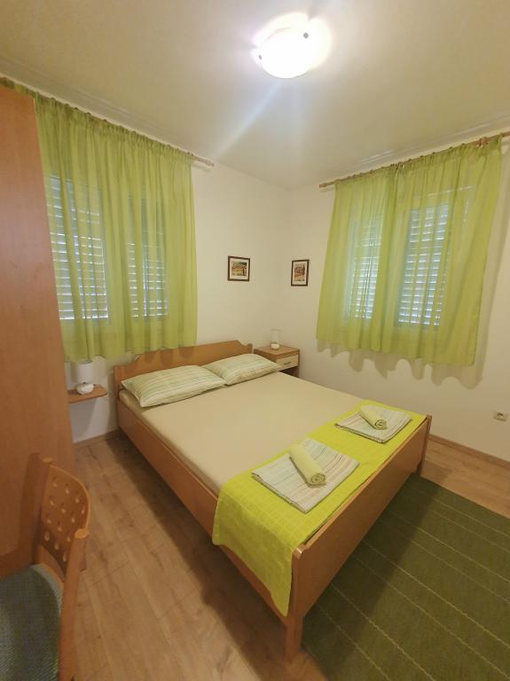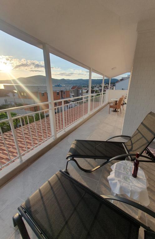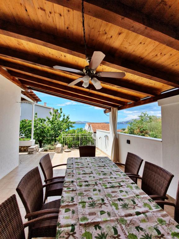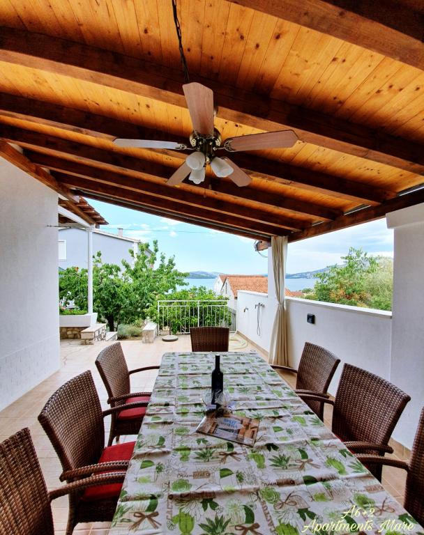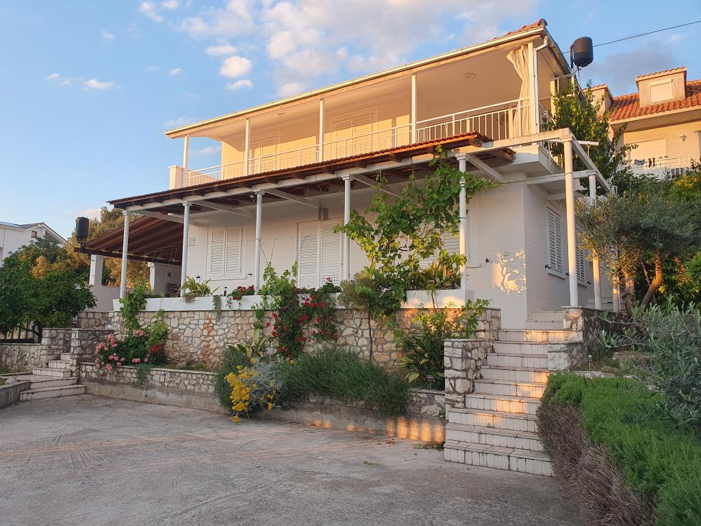 Volledig ingerichte appartementen in een huis in Okrug Gornji. De afstand tot het strand is 200 m (ongeveer 3 minuten lopen) en het centrum is 400 m. Strandfaciliteiten: café-bar, restaurants, winkels, geldautomaten, jetski's, bootverhuur, scooterverhuur, bus en boot voor vervoer naar Trogir, toeristische informatie, enz. APPARTEMENT 1 (A6+2): De gehele begane grond van het huis staat tot uw beschikking, met 3 slaapkamers (kamers met tweepersoonsbedden), een woonkamer met airconditioning (bevat een extra bed - bank), keuken, badkamer en extra toilet. Op de ruime binnenplaats met een verhoogd terras kunt u genieten van een barbecue, een buitendouche of gewoon van het uitzicht op zee. APPARTEMENT 2 (A4): Nieuw aangepast appartement op de eerste verdieping van het huis, met een ruim terras en een prachtig uitzicht op zee. Het bestaat uit 2 slaapkamers (tweepersoonsbedden), een woonkamer met airconditioning, een volledig uitgeruste open keuken en een badkamer. Er zijn 4 parkeerplaatsen op de binnenplaats.