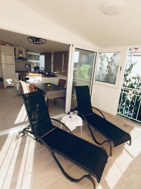Appartement met een groot terras, uitzicht op zee en buitendouche. Volledig uitgerust en comfortabel. Rustige buurt en zeer dicht bij het strand. De eigenaren waren zeer behulpzaam, aardig en beleefd. We werden verwelkomd met Kroatische wijn en heerlijke zelfgemaakte olijfolie. Hartelijk dank voor uw geweldige gastvrijheid.
