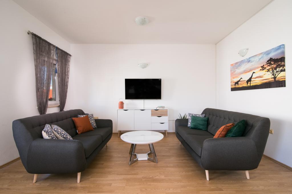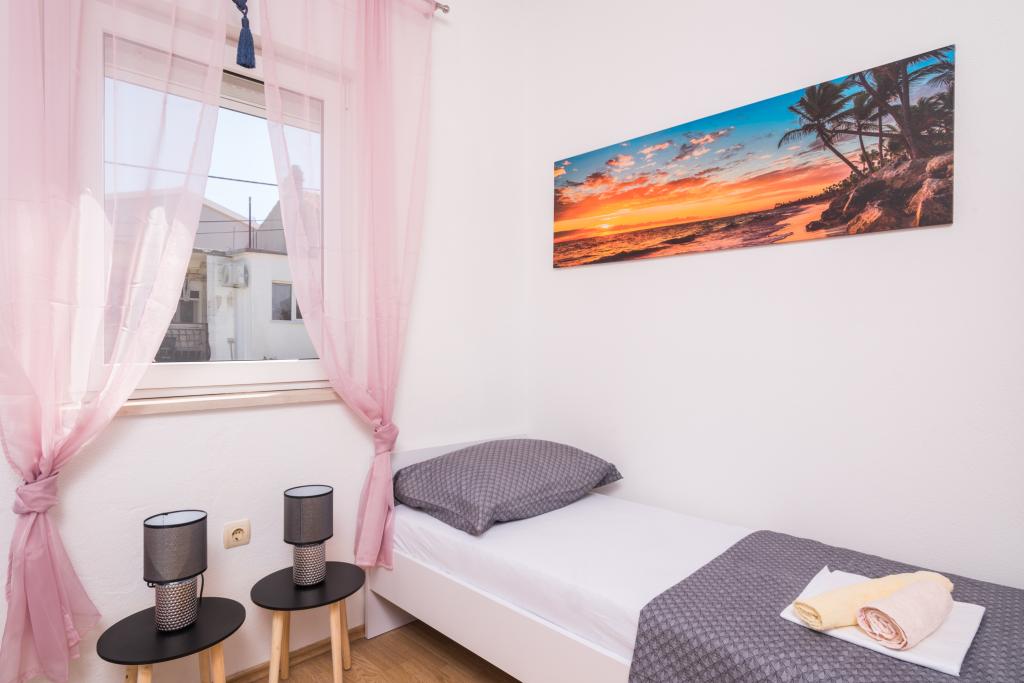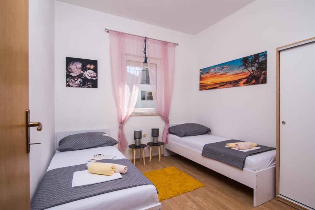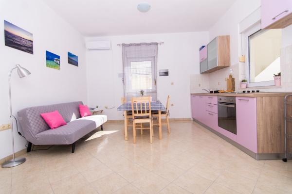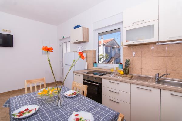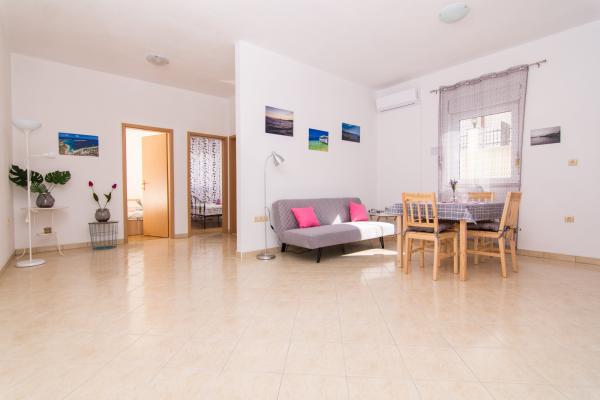 Volledig en modern ingerichte appartementen in een rustig deel van Okrug Gornji, op 150 meter van het stadscentrum. De appartementen beschikken over alles wat u nodig heeft en wat uw verblijf zo aangenaam mogelijk maakt. Het stadscentrum zelf - op 5 minuten loopafstand (vlakbij het postkantoor, de markt, winkels, cafés, restaurants en een apotheek) en de nabijheid van alle stranden maken ons complex nog interessanter en aantrekkelijker. De rustige omgeving van het complex zorgt ervoor dat u uw verblijf zo aangenaam mogelijk kunt maken, terwijl u rustig uw ochtendkoffie kunt drinken op het terras voor het appartement.