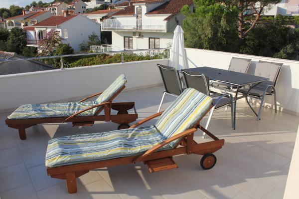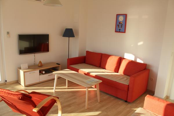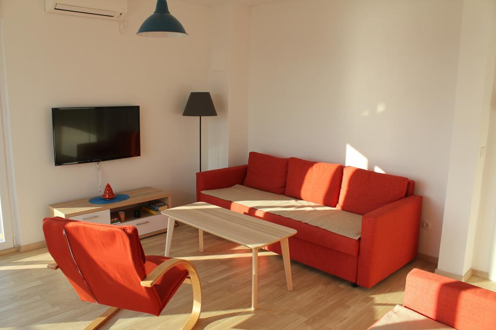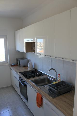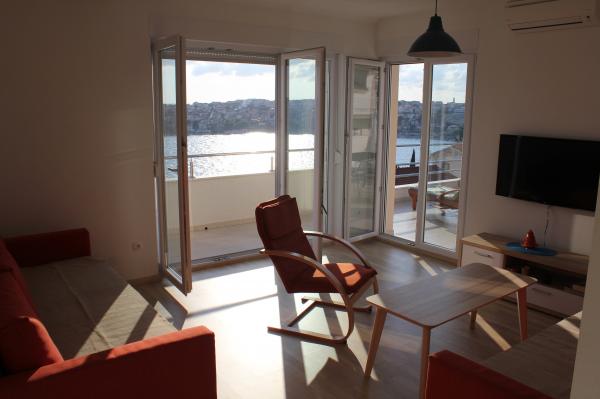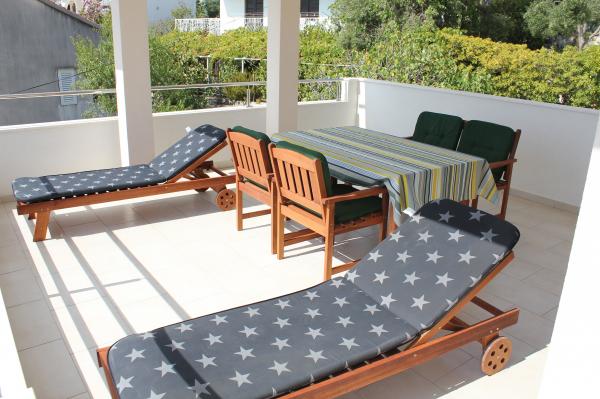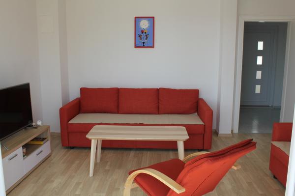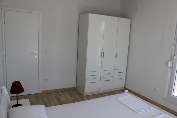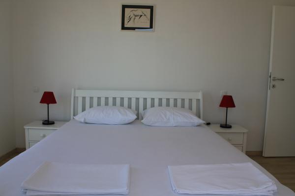 Appartementen op het zuiden zijn geschikt voor individuele bezoekers, maar ook voor stellen, kleinere groepen en gezinnen (4-5 personen). De appartementen zijn nieuw gebouwd en uitgerust met moderne en hoogwaardige materialen en apparatuur. Keuken, woonkamer, slaapkamer en badkamer zijn toegankelijk vanuit de gang. De appartementen zijn luchtig en licht in alle kamers, met de mogelijkheid tot verduistering met jaloezieën. De binnenruimte (56 m²) wordt aangevuld met een extra terras en balkon van 35 m², die toegankelijk zijn vanuit de woonkamer en slaapkamer. Ze bieden een prachtig uitzicht op de zee, die zich op 120 m afstand bevindt. Het appartement is uitgerust met een 43'-tv, wifi, vaatwasser, keramische kookplaat en oven, koelkast, Nespresso-koffiezetapparaat en magnetron. Voor een comfortabele nachtrust zijn de bedden voorzien van pocketmatrassen en hebben ze een afmeting van 160x200 cm, evenals kwaliteitsbeddengoed. 2 uitschuifbare banken (140x200 cm) in de woonkamer. Parkeerplaats. Wasmachine.