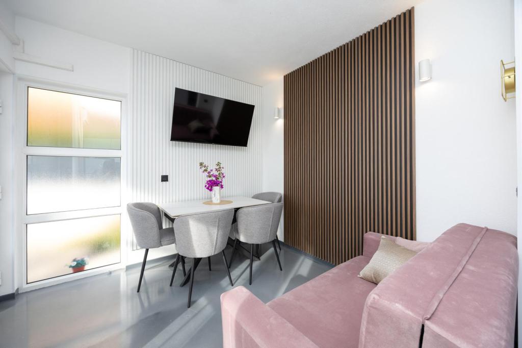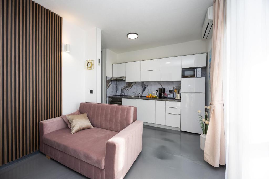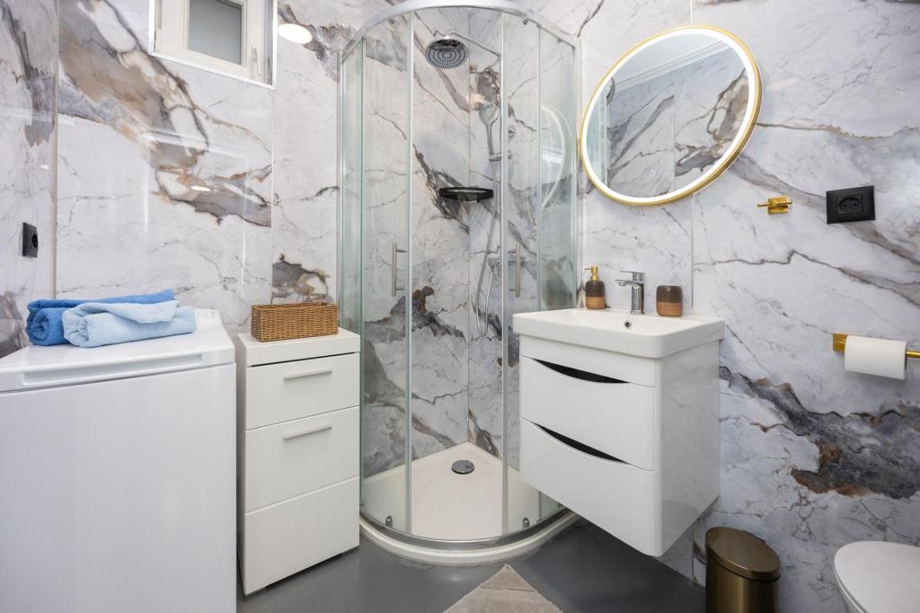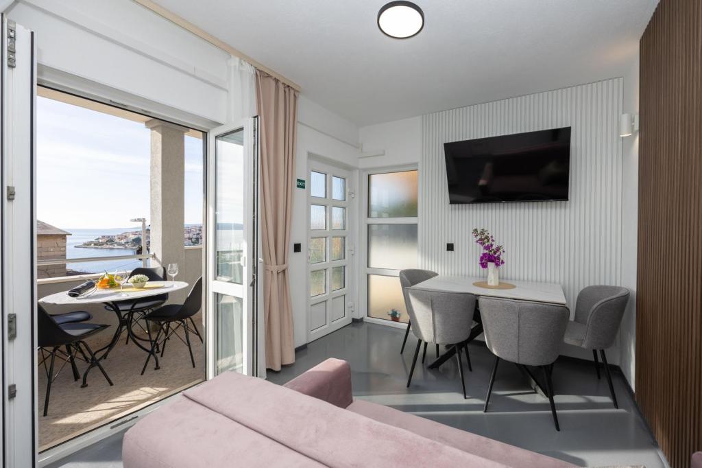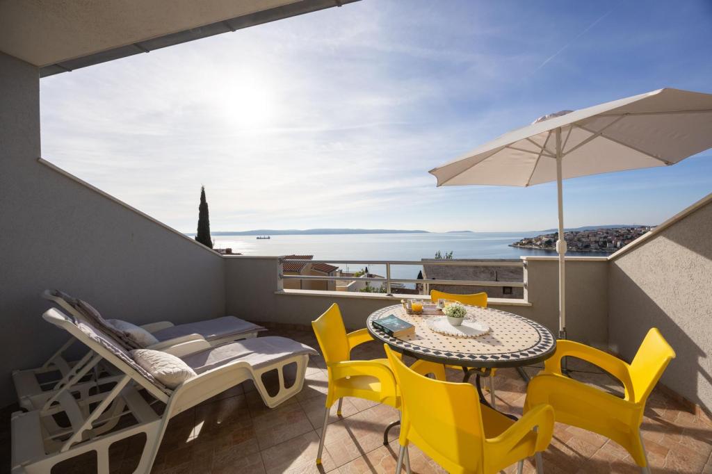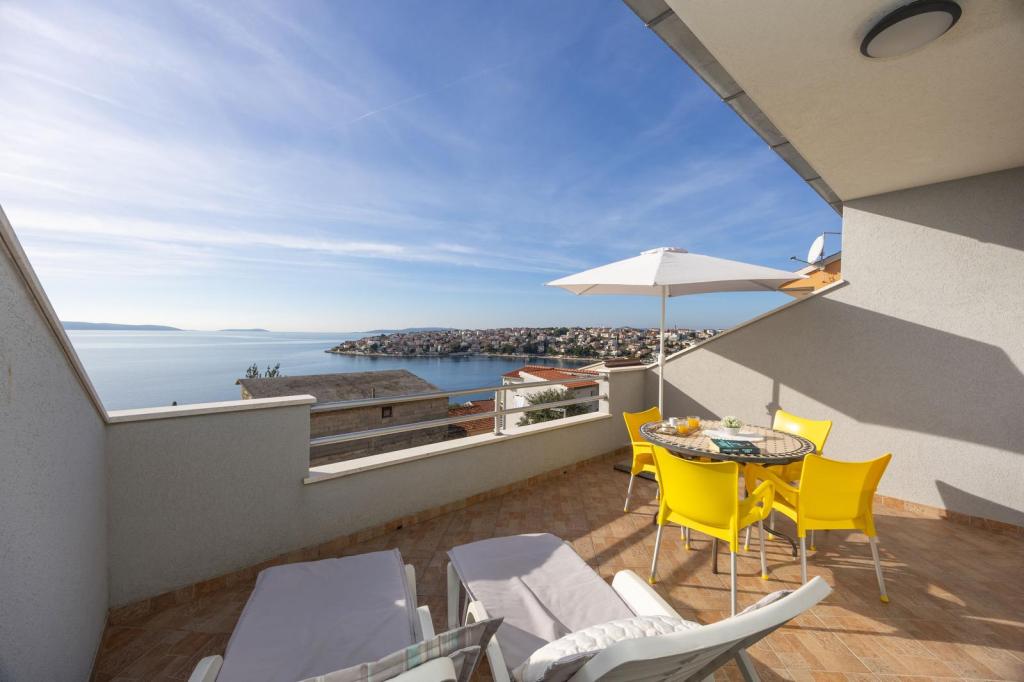 Apartments Nela zijn uitgerust met comfortabele accommodatie, gelegen aan de zuidzijde van Ciovo schiereiland. Meer in het bijzonder, in de baai Movarštica. Het uitzicht strekt zich uit op de eilanden Solta en Drvenik. Vlakbij ligt de prachtige historische stad Trogir, welke lekkernijen met zijn architectuur en entertainment. In de omgeving is er de luchthaven van Split (6 km), de stad van Kaštela (6km), Split (33 km). . Brengt u uw vakantie op een rustige plek, te ontspannen en te genieten van de idyllische zee, Bokun goed eten en een glas wijn en water. Apartments Nela zijn de ideale keuze voor jou. Family Rajcic je nestrepljivo verwacht!