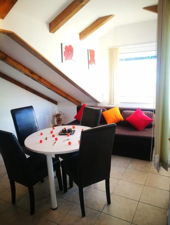 De appartementen bevinden zich in Okrug Gornji, op het adres Planikovica VII / 3. De kenmerken die kenmerkend zijn voor de ruimte waarin de appartementen zich bevinden, kunnen worden gepresenteerd als: heldere zee, ongerepte natuur, een ideale verblijfplaats voor gezinnen met kinderen en vrienden. Elk appartement heeft een prachtig uitzicht op de zee en de natuur vanaf de balkons en ruime terrassen. Elk appartement heeft een eigen parkeerplaats, airconditioning en recht op gratis onbeperkt internet. De afstand tot het oude centrum van Trogir is slechts 4,5 kilometer. Vlakbij ligt het 2 km lange strand van Copacabana. Naast een aangenaam verblijf vindt u hier een keur aan leuke activiteiten voor alle leeftijden. Op het reeds genoemde hoofdstrand is een groot aantal bars, restaurants en winkels. Als u op zoek bent naar een aangenaam verblijf op een rustige plek, vlakbij de zee met de zonnestralen zonder het lawaai van auto's dan bent u op de juiste plek Ap. 1 heeft 3 kamers elke kamer heeft een badkamer en balkon Ap. 2 heeft 3 kamers met 2 badkamers Ap 3 heeft 3 kamers WELKOM