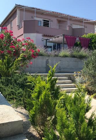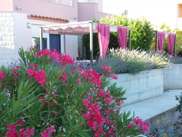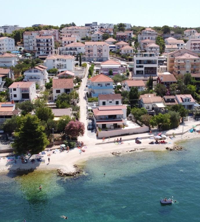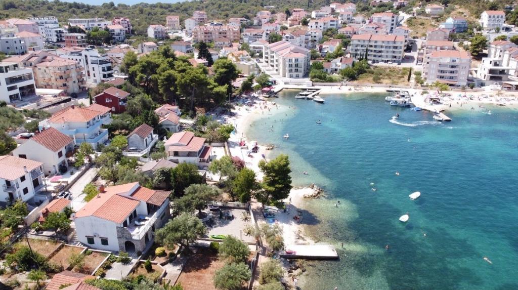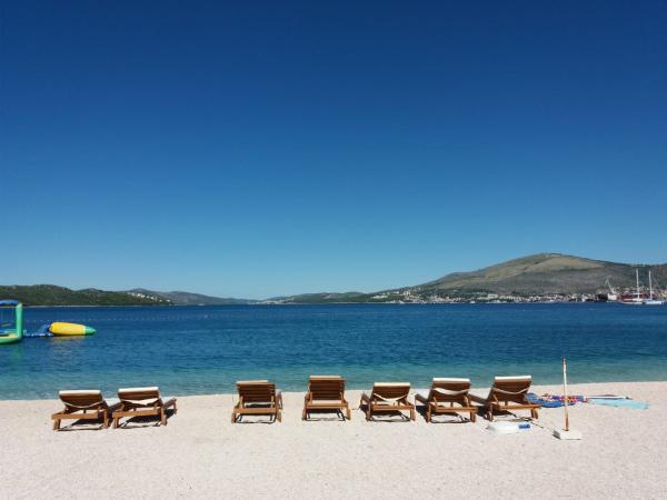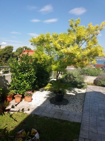 Nieuwe moderne appartementen, op slechts 40 meter van de zee en de hele zomer van entertainment en actieve vrijetijdsbesteding. De accommodatie is ideaal voor gezinnen met kinderen, want er is geen verkeer en een grote, groene tuin is een soort speeltuin. Rondom het huis ligt een mooie tuin verrijkt met mediterrane kruiden en bloemen, en draagt bij aan een aangenaam verblijf. In de olijfgaard, die is gelegen in de tuin, een open haard, waar gasten gegrilde gerechten kunt bereiden. De inrichting is gelegen in een rustig deel van het eiland Brac, in de stad Trogir, in een kleine baai in nepoštednoj nabij Trogir en op 5 km van de luchthaven van Split.
