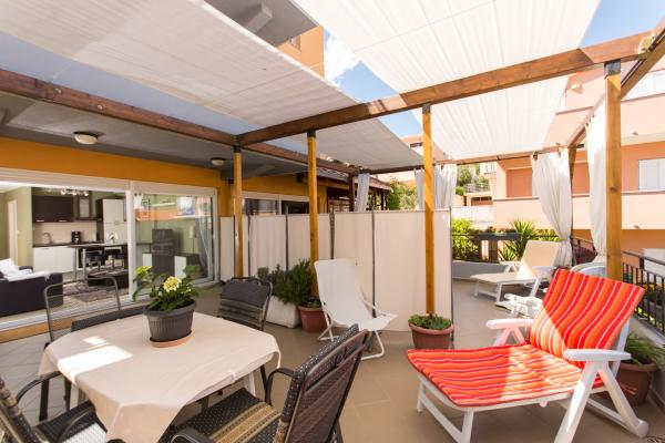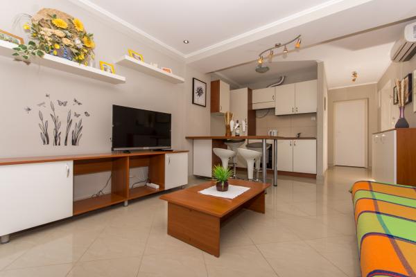 We verbleven hier 10 dagen. Groot gezelschap van 11. Zeer mooie appartementen. Comfortabele bedden. Aangenaam verblijf. Heel dicht bij de zee. U kunt kiezen uit verschillende stranden - steen of kiezel. Aanbevolen.