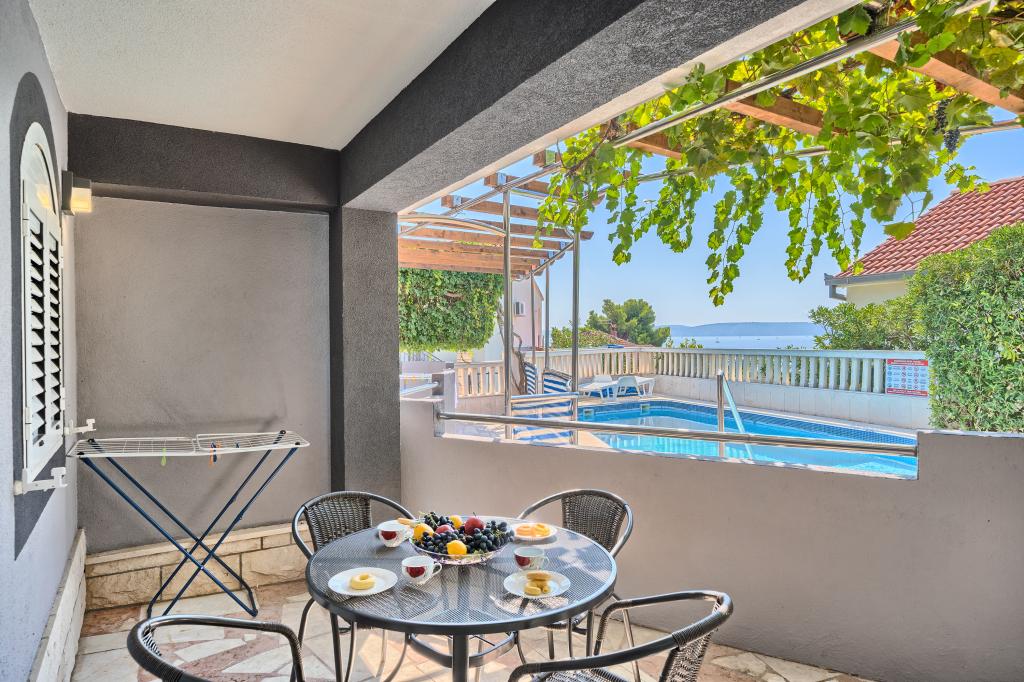 Absoluut perfecte ruimte, gunstige prijs, appartement met direct uitzicht op de zee en het zwembad, buitendouche bij het zwembad en ligbedden voor het comfort van de gasten, de weg naar de parkeerplaats is echt behoorlijk steil en glad, we misten een winkel in de omgeving, maar de kwaliteit van de accommodatie maakte alles goed.