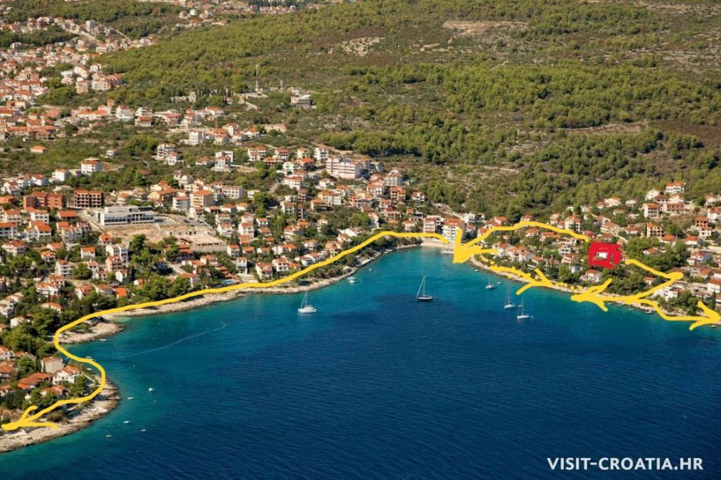 Inlusief wel Toeristenbelasting.Gratis, internet, airconditioning. parkeren... Tegen minimale kosten kunnen WASSERIJDIENSTEN aan huis worden verkregen. De ongerepte natuur aan zee biedt wandelmogelijkheden en afgelegen stranden. De stranden liggen op 200 meter afstand, kiezelstranden, rotsachtig... Fietsen is mogelijk. er is een tennisbaan in de buurt, en op 200 m van het huis is een duikschool - duiktrips, mogelijke boot-, scooterverhuur, ,. leuk waterpark voor kinderen op het plaatselijke strand. De UNESCO-stad Trogir ligt op 5 km afstand. BEDDEN in de appartementen: A1 en A2 zijn hetzelfde en hebben: EEN GROTE KAMER en 2 kamers met een eenpersoonsbed en een extra bed in de WOONKAMER TERRAS-BALKON van ongeveer 15 meter. A3 heeft een PAARKAMER - KLEIN BALKON, een EENPERSOONSKAMER en 2 aparte BEDDEN in de WOONKAMER - KLEIN BALKON en heeft 2 DOUCHE_TOILET TERRAS 12 m, waardoor u het appartement binnenkomt. A4 heeft een PAARKAMER - KLEIN BALKON, bank - 120. cm breed in de woonkamer en 2 aparte BEDden in de WOONKAMER - KLEIN BALKON en hebben 2 DOUCHE_TOILET TERRAS 12m, waardoor u het appartement binnenkomt