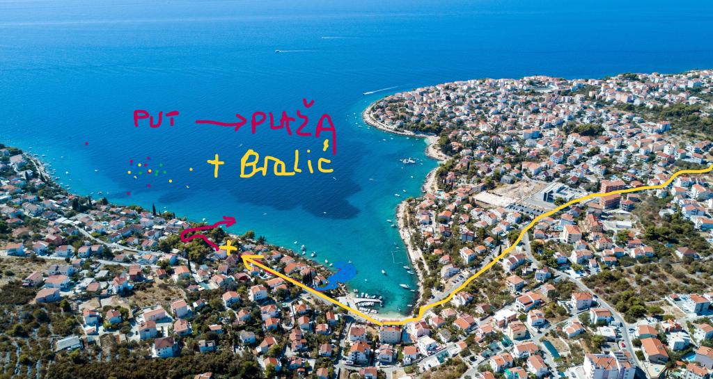 FAMILIEAPPARTEMENTEN-Bralić liggen aan de zuidkant van ČIOVA met uitzicht op het eiland ŠOLTA, in een rustig gedeelte van de MAVARČICA-baai. Het huis ligt op de tweede rij van de zee, 30 m via STRAND 200 m. ALLE appartementen hebben een aparte ingang VANAF DE TUIN VAN HET HUIS. Elk appartement met zijn woonkamer en TROUWKAMER en hun balkons heeft uitzicht op zee. A1 en A2 hebben (een HUWELIJKSkamer en nog 2 kamers met 1 bed. A3 en A4 hebben een HUWELIJKSKAMER, 2 bedden in de WOONKAMER gescheiden door Harmo-deuren van de keuken en een toilet-douche bij de HUWELIJKSkamer en een WC- douche in de buurt van de WOONKAMER. De tuin heeft parkeergelegenheid voor 1 PASSAGIERSAUTO VOOR HET APPARTEMENT. Appartement A3 heeft een TERRAS voor GASTEN tot 10 personen. Hoe vindt u het huis via de NIEUWE brug? km op de nieuwe weg naar OKRUG GORNJI - Vanaf MAVARČICA-café-bar ziet u (aan de rechterkant) de KRALJA KREŠIMIRA-straat en het huis ligt aan de linkerkant. HET STRAND IS VAN STEEN. WIJ ACCEPTEREN NIET