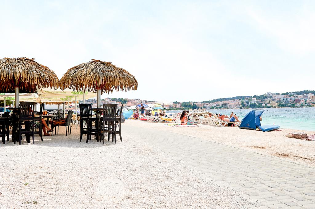 Een charmant huis vlakbij het strand omgeven door tuinen en mediterrane planten. Elke verdieping van het huis is een apart appartement met grote kamers. De afstand van het strand is 40 meter. Voor de woning zijn voldoende parkeerplaatsen. Hier kunt u een idyllische en actieve vakantie doorbrengen. De buitengrill bevindt zich achter het huis en heeft een overdekte zithoek voor 15 personen.